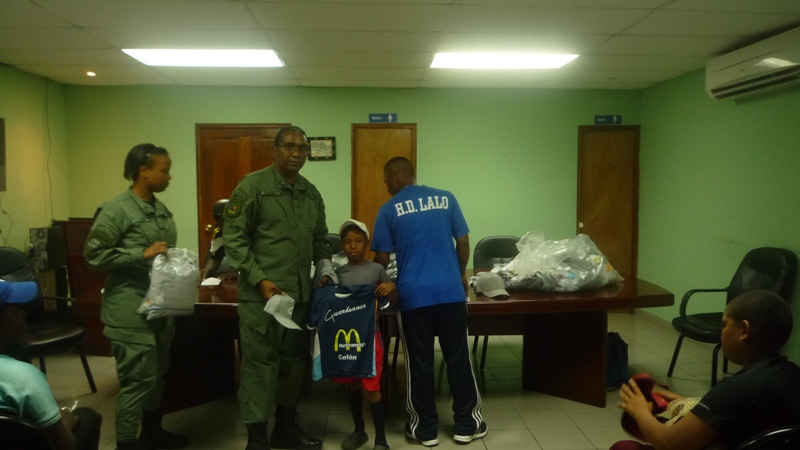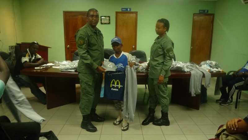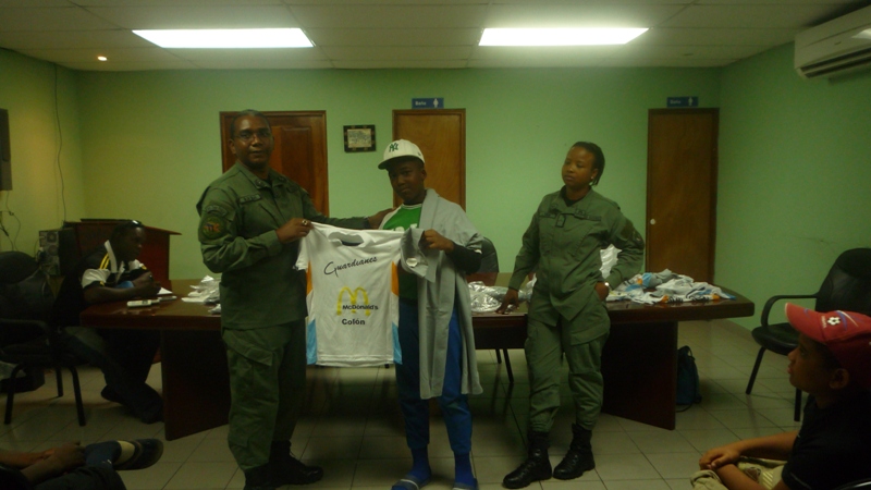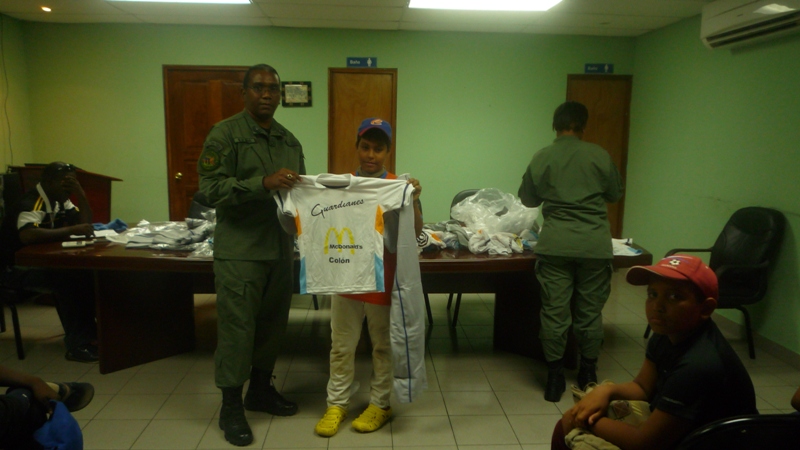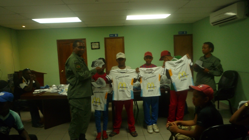Nuevos uniformes recibieron en la mañana de este viernes 7 de febrero los niños que conforman la selección de beisbol pre infantil, e infantil del Club deportivo Atlético Nacional de la Zona de Policía de Colón. El Subcomisionado Néstor De Seda, en representación del Subcomisionado Porfirio Justavino, jefe de la zona policial, les hizo entrega de los uniformes a los niños que estaban muy emocionados. Con estos nuevos uniformes los niños participarán en los diferentes compromisos deportivos que tengan. En la entrega los niños estuvieron acompañados de sus padres, quienes hablaron de la satisfacción y el orgullo que sus hijos pertenezcan al club deportivo de la Policía Nacional, ya que esto los mantiene alejados de los peligros de las calles además de que están viendo en los policías a un amigo Los entrenadores de estos niños todos son miembros de la zona policial de Colón.