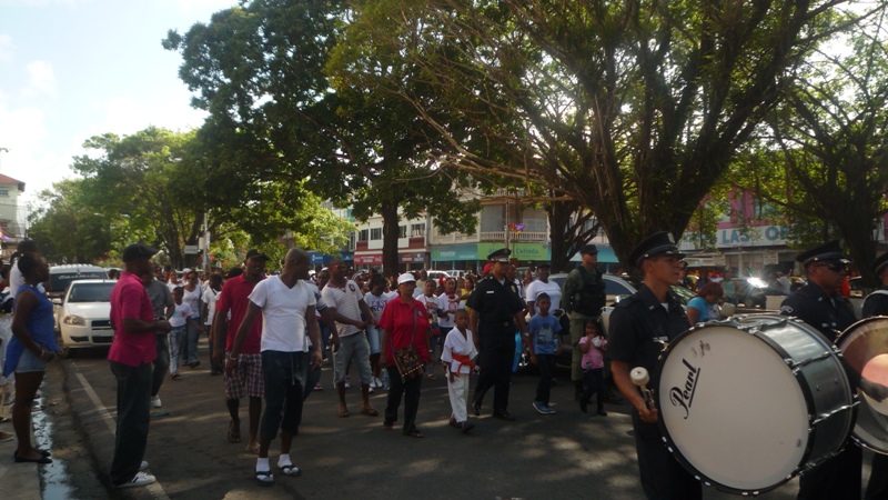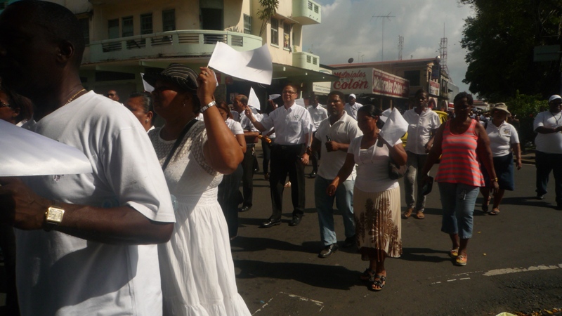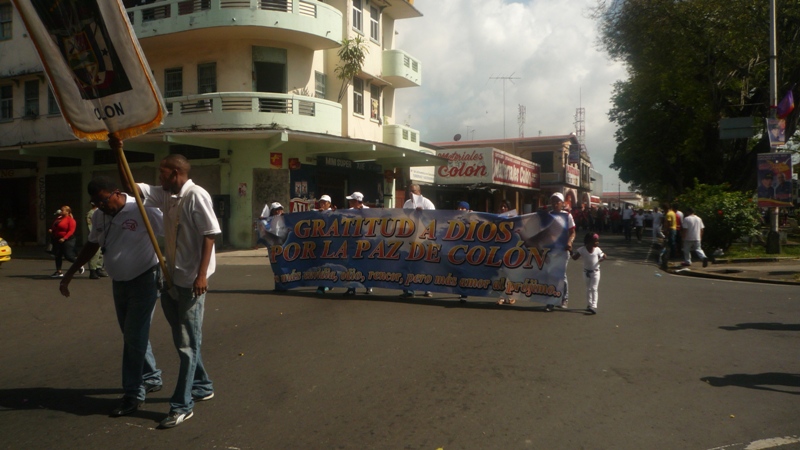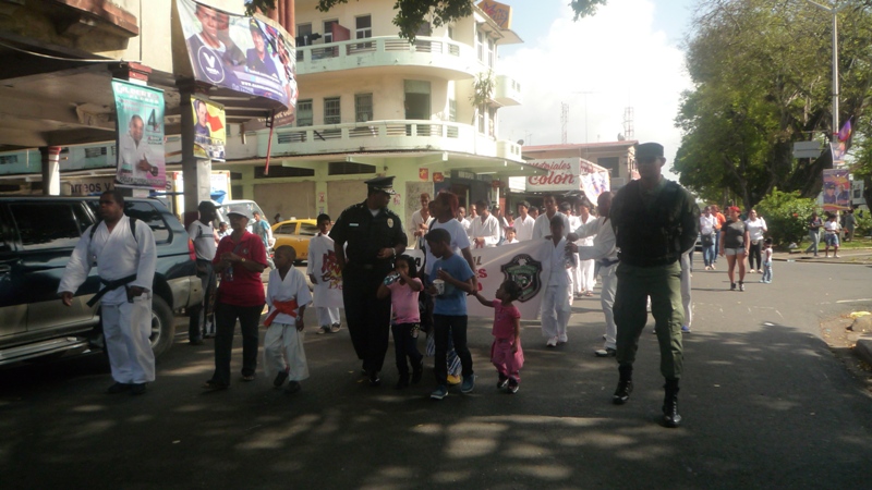 En horas de la tarde del sábdo 8 de febrero, el Subcomisionado Porfirio Justavino acompañado de personal bajo su mando en la zona policial de Colón y autoridades de la provincia como el gobernador Jorge Bordanea, participaron en una marcha por la paz que organizaron dirigentes de las iglesias evangélica. El Subcomisionado Justavino, también estuvo acompañado por los niños del Verano Feliz, los Jóvenes Contra el Delito y los niños y jóvenes que son capacitados en karate por miembros de de la Policía. Participaron también de la caminata la banda de música de la Policía Nacional quienes animaron el recorrido que se hizo por las principales calles de la ciudad de Colón. La marcha culminó en la calle 9 avenida Central, donde los pastores oraron por la provincia y ungieron con aceites a las autoridades para que sean guiados por nuestro señor Jesucristo. |