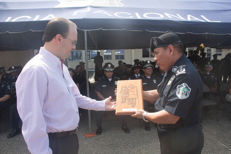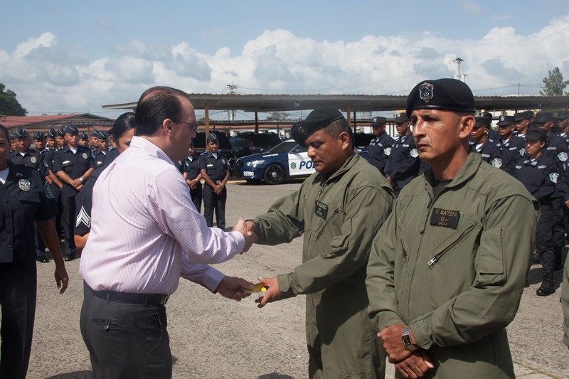 Durante una ceremonia realizada en la sede policial de Ancón, treinta uniformados que forman parte de la Unidad de Control de Multitudes (UCM) y los agentes Jonathan Morán y Margel Gallejo, del Grupo de Apoyo Al Servicio (GAS); ambos de la Dirección Nacional de Operaciones, recibieron bonos de manos del director de la Policía Nacional, ingeniero Julio Moltó y del Inspector General, Comisionado Didier De Gracia, como un reconocimiento a la labor realizada a beneficio de la comunidad. En la ceremonia donde estuvieron presentes miembros del Directorio Nacional Policial, jefes de zonas y áreas se destacó el importante esfuerzo y entrega de estos uniformados, quienes día a día luchan en pro de la seguridad. Los agentes Jonathan Morán y Margel Gallejo, fueron condecorados recientemente con la Medalla al Servicio Distinguido por enaltecer a la institución, luego que se negaran a ser sobornados cuando se encontraban de turno en un operativo en Arraiján, que tuvo como resultado la retención de un sujeto que mantenía en su poder un maletín con dinero de dudosa procedencia. Por su parte, el Comisionado Darío Díaz, jefe de la Unidad de Control de Multitudes (UCM) hizo entrega al director policial de un reconocimiento de agradecimiento, por el apoyo brindado a la UCM, que celebra sus 24 años de aniversario.