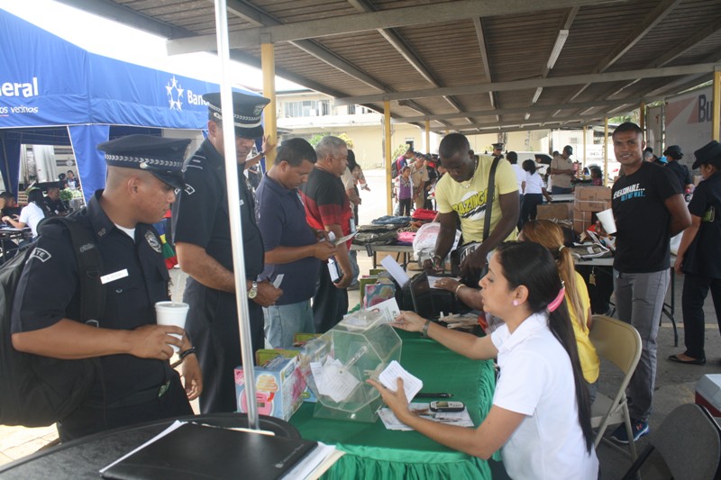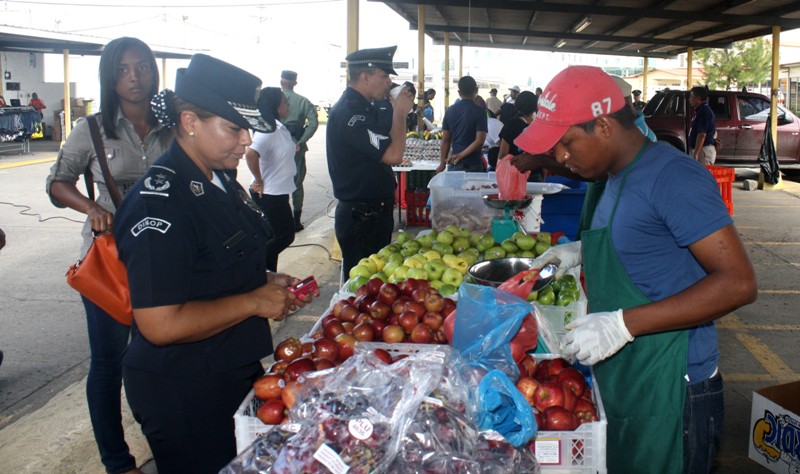 Uniformados y miembros no juramentados junto a sus familiares aprovecharon para adquirir a bajos precios los productos de la canasta básica durante una feria diversificada realizada por la Dirección de Bienestar Laboral y Familiar de la Policía Nacional en la sede de Ancón. Tomando en cuenta que se acercan las clases, durante esta actividad también se ofreció a la venta útiles escolares para facilitarle a los padres de familia su adquisición. Diversos puestos de las empresas participantes ofrecieron promociones bancarias, productos artesanales, ropa deportiva, entre otros artículos. La Policía Nacional realiza a menudo esta actividad a favor del bienestar económico de cada uno de sus miembros. |