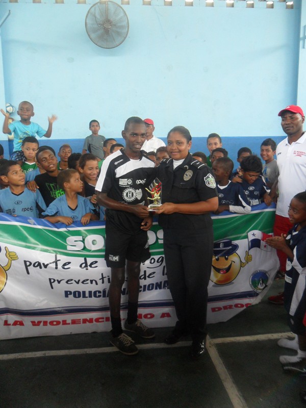 Unidades de la Zona de Policía Metropolitana Oeste, junto a la Subestación de Pueblo Nuevo llevó a cabo el torneo de fútbol El Mundial del Barrio donde jóvenes y niños del corregimiento participaron. Las unidades de Seguridad Ciudadana de la Zona Metropolitana, y de la Policía de Niñez y Adolescencia, compartieron con jóvenes, quienes vieron sus esfuerzos premiados cuando recibieron lindos trofeos por su participación en una amena convivencia pacífica libre de drogas y pandillas. Las unidades de la Policía de Niñez y Adolescencia les dictó charlas durante el torneo el cual fue de gran beneficio. |