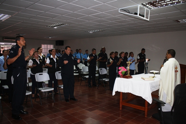 Este lunes en hora tempranas la Sexta Zona realizo una Homilía en acción de gracias por el inicio de una nueva semana, para sobre todas las cosas comenzar con las bendiciones del señor, como lo dice su palabra en salmos 150:6 “TODO LO QUE RESPIRE ALABE AL SEÑOR”. En esta celebración participaron, unidades administrativas, D.I.J, personal no juramentado y también se le extendió la invitación al personal de Migración. |