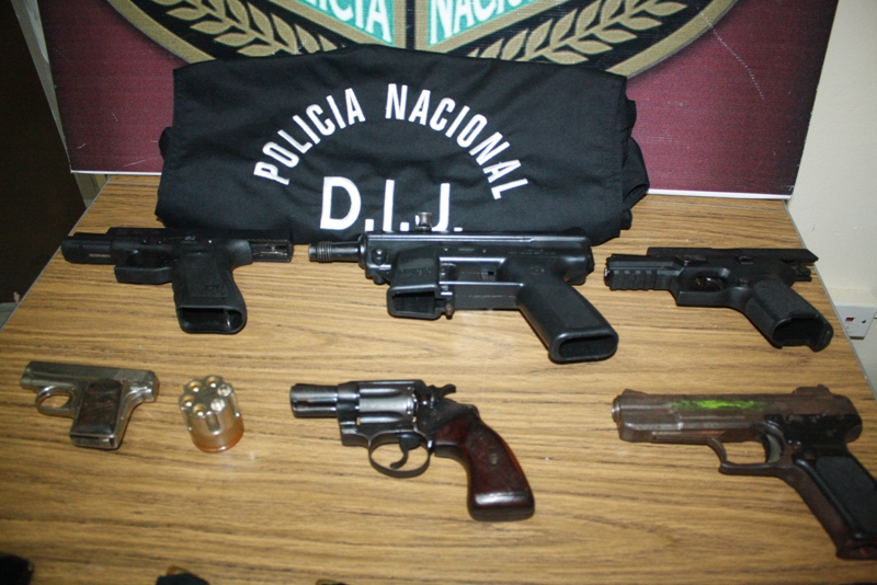 Unidades de Narcótico de la Dirección de Investigación Judicial (DIJ) decomisaron en la mañana de este martes 18 de febrero droga, armas y municiones durante dos diligencias de allanamientos en el sector de La Mata en el distrito de Bugaba, provincia de Chiriquí. La primera diligencia se realizó a una residencia donde se encontró una pesa digital, tres envoltorios de presunta cocaína, 30 envoltorios de presunta marihuana, 10 municiones de 9 milímetros y B/.320.00 en efectivo. En colaboración con unidades de la zona policial de Chiriquí y la Fiscalía de Drogas, en esta primera verificación se aprehendió a una joven de 24 años de edad que se mantenía en la residencia al momento del allanamiento. Simultáneamente a esta diligencia, las unidades realizaron otro allanamiento logrando la incautación de un vehículo, tres celulares y B/.110.00 en efectivo. El vehículo se mantenía estacionado en una residencia donde se decomisaron varias armas de fuego entre ellos: Por este último caso se aprehendió a una mujer de 32 años de edad. Tanto las evidencias decomisadas como ambas detenidas fueron remitidas a las instancias judiciales de la provincia de Chiriquí para continuar con las investigaciones. |