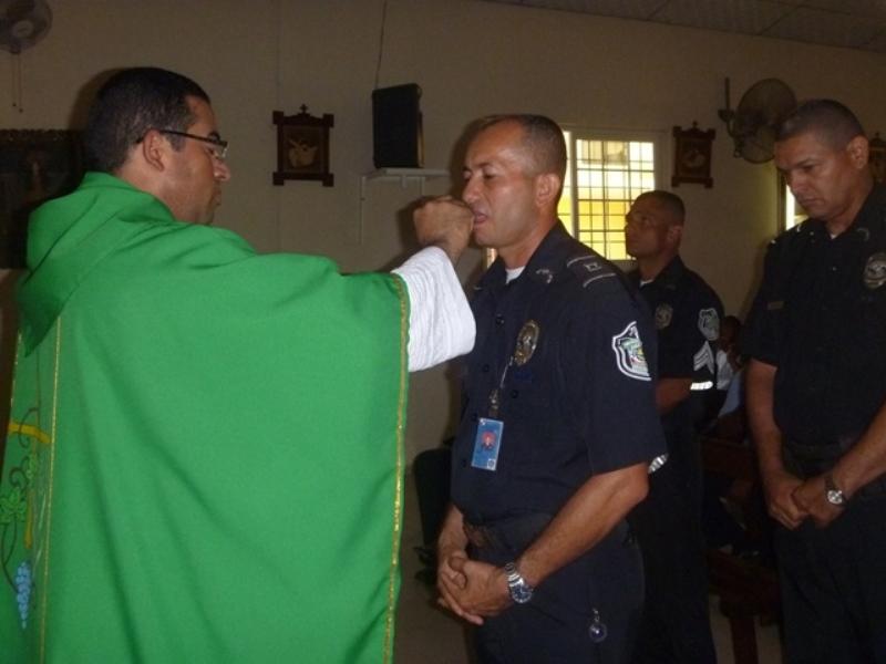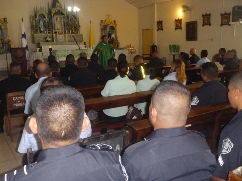 La cita eucarística fue oficiada por el R. P. Erick Domínguez, Capellán de la 7ma Zona de Policía de Los Santos, solicitando que esta clase de actividad se realice con mayor frecuencia ya que es importante el tener la presencia de Dios y dar gracias cada momento de nuestras vidas. |