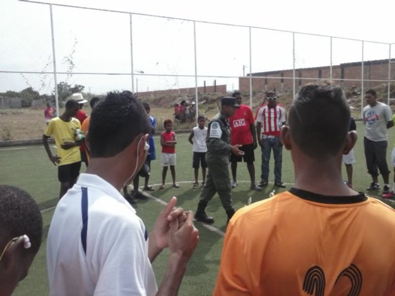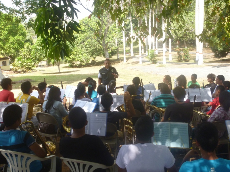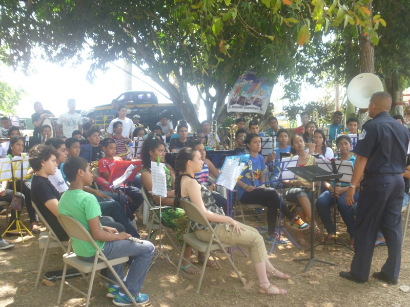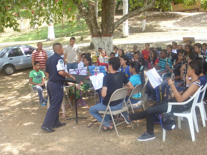 Unidades de la Policía de Niñez y Adolescencia, dictaron charlas a un grupo de jóvenes músicos durante la culminación del programa verano feliz, organizado por el Municipio de Arraiján; al igual que a niños participantes de una liga de fútbol realizada en el sector del Chorrillito. El campamento realizado en el Club Campestre El Carrizal, tuvo la participación de un aproximado de 150 niños, quienes atentamente escucharon los consejos dados por las unidades policiales. Entre algunos temas que debatieron se destacaron: Violencia Familiar, Pandillerismo, Acoso sexual, entre otros. Los jóvenes que participaron de la actividad se encontraban entre edades de 8 a 16 años, los cuales en todo momento tuvieron gran entusiasmo participando con preguntas y contando anécdotas vividas a las unidades policiales, dando como resultado la interactuación de la Policía Nacional con la juventud. Horas después las unidades policiales participaron en un partido de fútbol en el sector del Chorrillito, corregimiento de Vista Alegre, en donde debatieron temas de violencia, entre otros, teniendo la aceptación de los jóvenes deportistas, quienes expresaron su alegría por la participación de la Policía en el evento. |