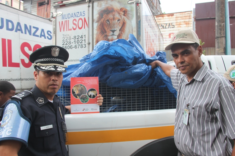 Así es señores, esta mañana en el sector de Barraza de el Chorrillo, fue encontrado en una casa utilizada como oficina de mudanzas, un manigordo, que es una especie de felino de mediano tamaño, y que gracias a la diligencia del señor Fernando Wilson, gerente esta empresa, la UPC, de la Policía Nacional y la Autoridad Nacional del Ambiente (ANAM), ahora este animalito podrá habitar en un ambiente más acorde a su especie. Nos narra el señor Fernando Wilson, que al principio no podía creerlo, cuando uno de sus empleados le dijo que allí había un “tigre”, el mismo no le hizo caso hasta que un día, le causó un gran susto cuando le pasó al lado de él, de inmediato informó a la ANAM, de la existencia, y estos le facilitaron una jaula que el animalito burló. Me comunique con la policía y rápidamente recibí la ayuda, se hizo la coordinación correspondiente y la ANAM, una vez más, nos facilitó una jaula más fuerte donde se pudo capturar. “La policía siempre nos ayuda, y su participación es muy buena, muy buena como siempre” expresó el señor. Wilson. Por otra parte, el Subcomisionado de la UPC, Luis Ortiz, expresó que al recibir el comunicado del señor Wilson, asistieron al lugar de inmediato y le brindaron el apoyo necesario, esta es una especie que se encuentra en peligro de extinción por ende debemos velar porque se mantengan y permanezcan en sus hábitat. Con el asombro de todos los presentes el animal fue trasladado en una jaula metálica por personal de la ANAM, el mismo producto de su estado e intentando salirse de la jaula, se causó una herida en la parte frontal de la cabeza. Entre comentarios, muchas fotografías, y risas de los residentes, agradecen las diligencias realizadas, ahora ya el León de las mudanzas tendrá una historia más que contar. |