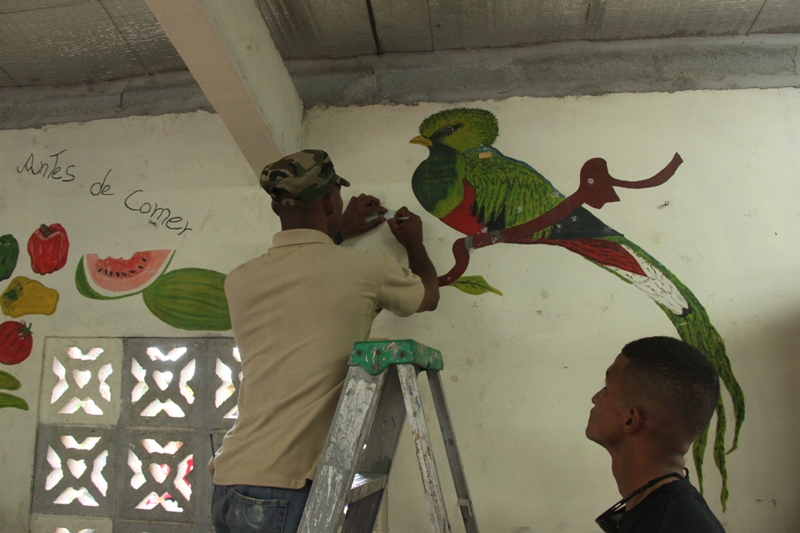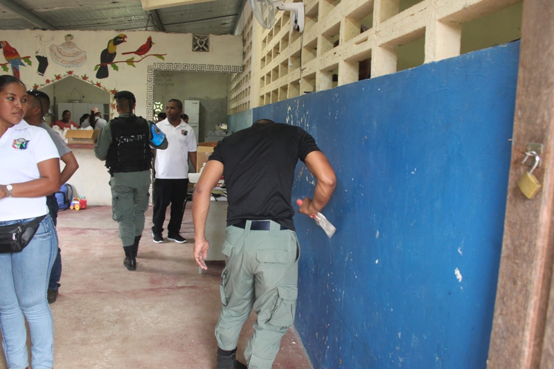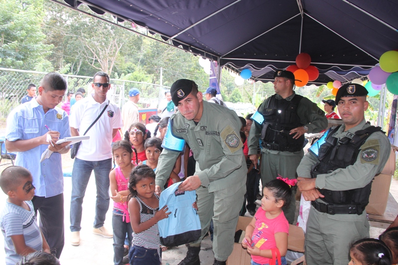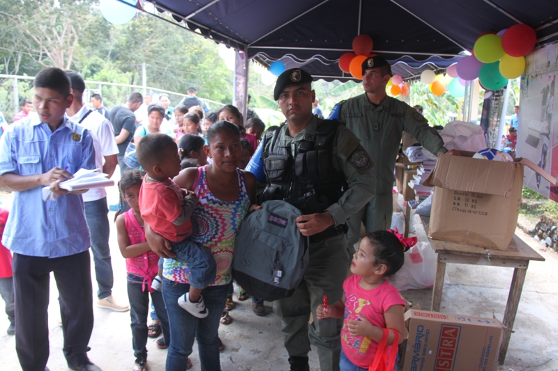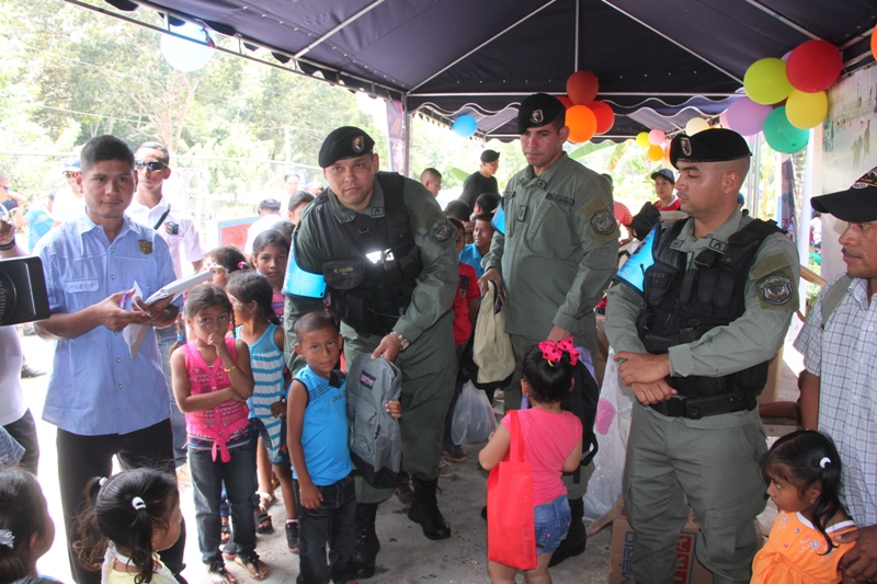 Un número plural de miembros del Grupo de Apoyo al Servicio realizaron labores de reparaciones y pintura en los salones de clases y los baños. Igualmente se repartieron mochilas con útiles escolares a los estudiantes de los diversos grados de La Escuela Primaria La Gaita.