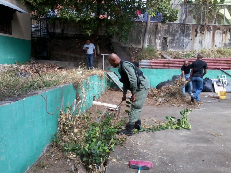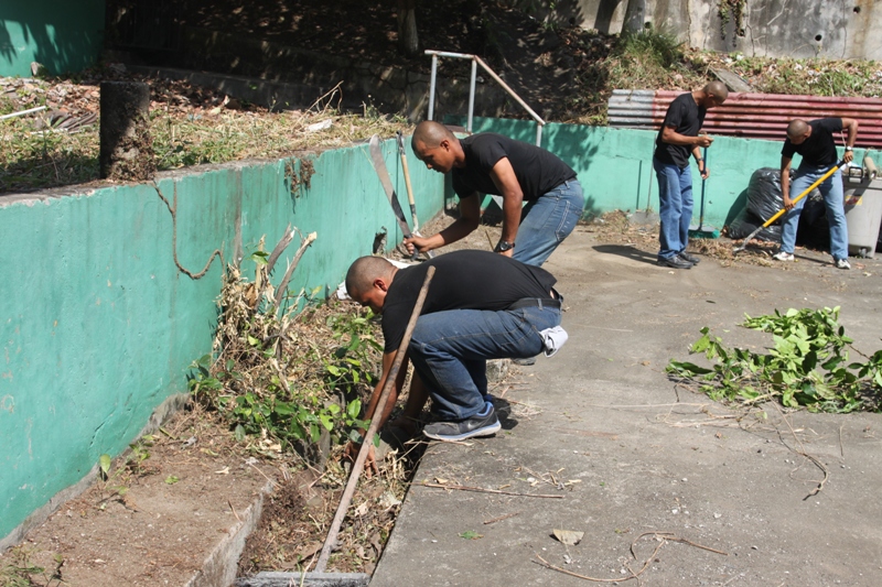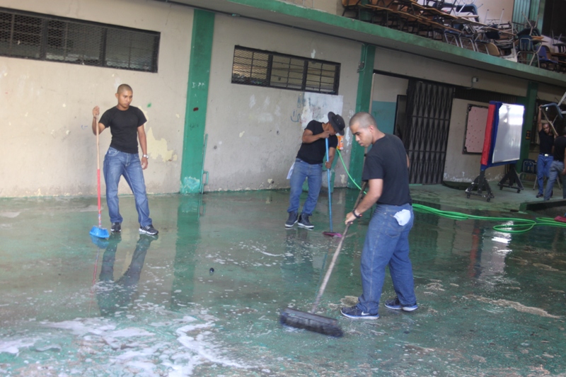Con escobas y herramientas de limpieza en mano, un grupo de 40 estudiantes de la Instituto Superior de Policía (ISPOL), realizaron una limpieza, en calidad de labor social en el Instituto América, colaborando así, que este plantel educativo se encuentre apto para recibir a sus estudiantes, en su primer día de escuela. El Mayor Manuel Zorrilla, del Centro de Enseñanza Superior (CES), quien dirigía esta comisión en compañía de dos unidades policiales e instructores de la ISPOL, trabajaron junto a su equipo de estudiantes, quienes muy diligentes realizaban la labor… “también es parte de nuestra misión, enseñarles a nuestros estudiantes el valor de la cooperación y participación en actividades como esta, que nos llenan de gran satisfacción, contribuyendo para el beneficio de los demás”. Comentó el Mayor Zorrilla. En dicha actividad el director del plantel el profesor, Juan Antonio Daniels, y el presidente del Club de padres de Familia el señor, Anacleto Márquez, agradecieron a la Policía Nacional, por el apoyo brindado en esta jornada de limpieza. Con un panorama limpio, y fresco, los estudiantes de la ISPOL, agotados pero satisfechos por el trabajo realizado, dan por cumplida la misión en las instalaciones del Instituto América.