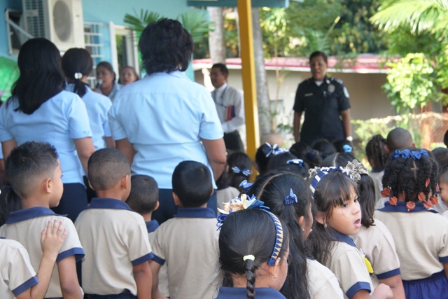 Muy temprano, desde las ocho de la mañana y de manera puntual inició la jornada de aprendizaje de un grupo numerosos de niños y niñas, hijos de uniformados de la Policía. Como de costumbre salieron a relucir diferentes emociones por ser el primer día de clases en el Centro de Orientación Infantil Rayitos de Sol de la Institución, ubicado en Balboa. Y es que en el COIF Rayitos de Sol se aprovecha el tiempo al máximo; su cuerpo docente busca incentivar desde el primer día la participación de los hijos e hijas de los uniformados que acuden a este centro, ayudándolos a descubrir sus talentos a través de diversas situaciones de aprendizaje y actividades lúdicas, formando a los que serán hombres y mujeres buenos en el futuro. La directora general del COIF, la teniente Magaly Villareal en conjunto con la Subcomisionada Mirta Mosquera, presentes en el plantel, ultimaban detalles acerca de las estrategias y tácticas que se deberían emplear hoy para romper el hielo, por ser el primer día de clases, con los niños alejados de sus padres y entrados en un sistema que es divertido pero requiere disciplina, compromiso, colaboración y entrega, para lograr el éxito, finalizado cada periodo de aprendizaje. Por lo que se tiene claro que el objetivo de este COIF es el de resguardar la necesidad educacional de los hijos de las unidades de la Policía Nacional. Es por eso que estos infantes son atendidos y reciben clases en el COIF por parte de docentes competentes, mientras que sus padres realizan el servicio policial. Dentro de los servicios que se brindan están: cinco maternales, tres pre jardines y tres kínder, en donde están distribuidos los doscientos trece favorecidos con este bienestar policial y familiar. Además, en el Centro de Orientación Infantil Rayitos de Sol de la Policía Nacional de Panamá se brindan a los niños clases de idioma Inglés, Informática, Educación Física, Canto, Oratoria, Pintura, Juegos Lúdicos y Folklore con el objetivo de cultivar las inteligencias múltiples en los infantes. La encargada del COIF, manifestó que trabajan en la integración de los padres para el fortalecimiento de lazos afectivos durante el proceso de enseñanza - aprendizaje, ya que la educación es una responsabilidad compartida escuela - hogar. |