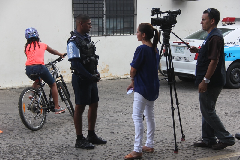 La periodista Jenny Caballero de Televisora Nacional, Canal 2 (TVN) coordinadora del popular segmento Héroes que se publica en el Noticiero Estelar todos los jueves, realizó una visita a la sede de la Unidad Preventiva Comunitaria (UPC) de la Policía Nacional. Allí conversó con el Subcomisionado Luis Ortiz, Jefe de la Policía Comunitaria quien le explicó las múltiples actividades des que esta unidad policial realiza con los niños del barrio del Chorrillo y en el Corregimiento de Curundú. La periodista Caballero, fue informada sobre actividades deportivas y recreativas que incluyen clases o clínicas de Volley Ball, baloncesto, balompié, boxeo, karate, natación, manejo de bicicletas, dibujo, pintura, danzas, vuelo de cometas además de paseos a museos y otros sitios de interés turístico e importancia histórica. |