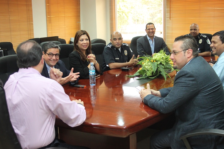 La Policía Nacional recibió la visita de una comitiva de la hermana República de Guatemala con el objetivo de conocer de cerca el Sistema de Videovigilancia. El grupo, encabezado por el Ministro de Gobierno de Guatemala, Carlos Arqueta Medina, fue recibido por el Director General de la PN, Julio Armando Moltó y el Director de Operaciones, Comisionado Miguel García. El equipo de trabajo que acompañó al Ministro Arqueta Medina, solicitó la información relacionada con el sistema, su funcionamiento, el manejo y la utilidad para la institución de seguridad. Por otro lado, se acordó continuar con las coordinaciones para obtener asesoría de ambas partes en temas que se tengan en común. Para la Policía Nacional es importante contar con la colaboración de países hermanos ya que esta relación beneficia la lucha contra el delito en todos los niveles.
