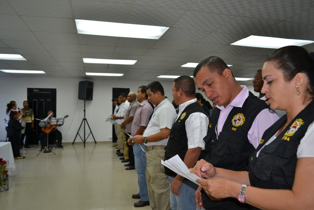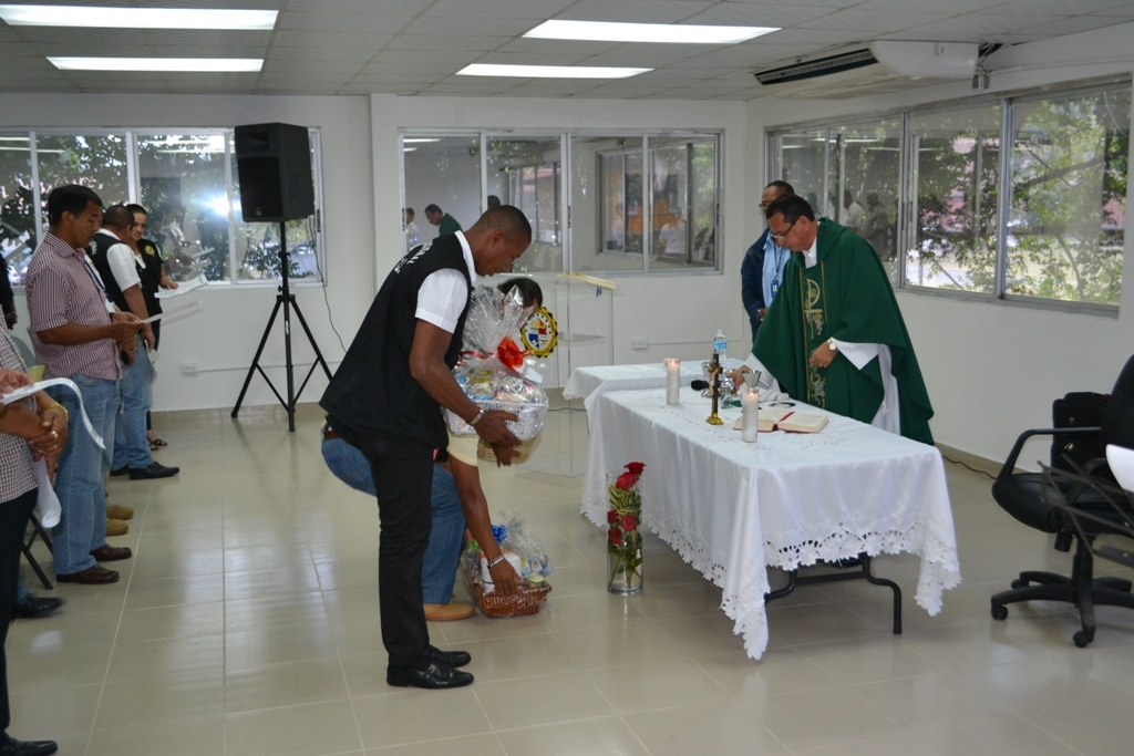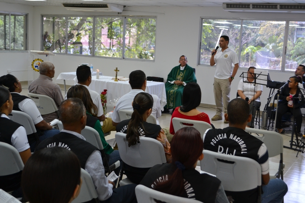 Debido al inicio de los diversos operativos que desarrollarán las unidades de la Dirección de Investigación Judicial (DIJ) durante los días de carnavales a nivel nacional, el capellán de la Policía Nacional Edgardo Flores ofreció una misa a estas unidades. El capellán aprovechó la eucaristía que se realiza cada mes en la sede de la DIJ, para bendecir a las unidades que inician las acciones de seguridad para los días de festividades en la ciudad y el interior del país. Durante la ceremonia se hizo entrega de canastas de alimentos secos. La misa que elevó un mensaje de paz, amor y perdón, contó con la participación del Director y Subdirector de Investigación Judicial el Comisionado Manuel Castillo y el Subcomisionado Miguel López, además de oficiales, agentes y clases de la DIJ. |