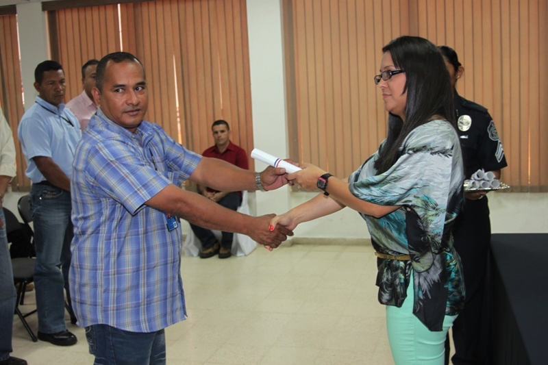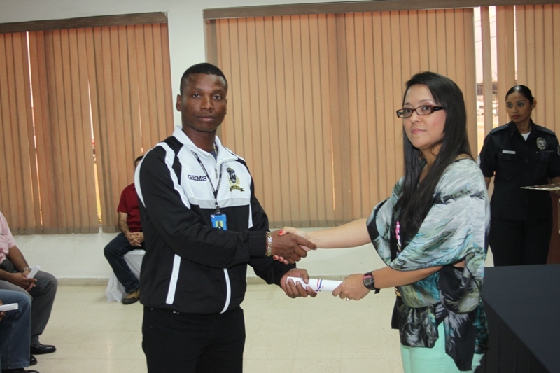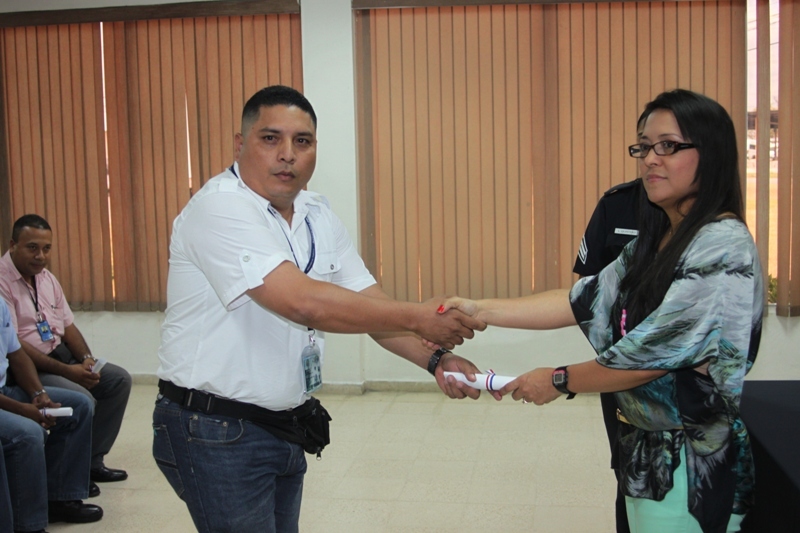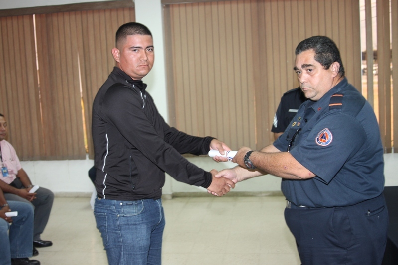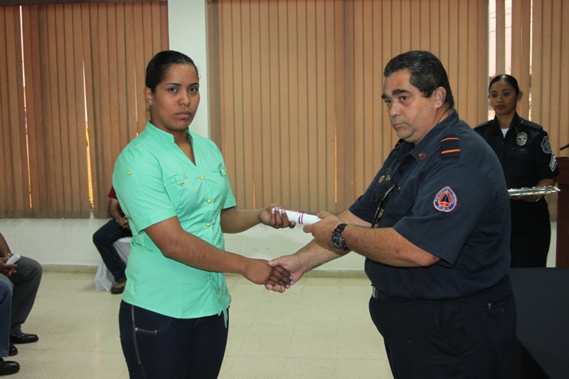 Veinticuatro uniformados que laboran en las diferentes dependencias de la Policía Nacional recibieron sus certificados tras haber culminado el curso Básico de Primeros Auxilios, durante una ceremonia realizada en la sede de Ancón. Estas unidades fueron capacitadas durante una semana en los temas manejo de hemorragia, manejo de fractura, manejo en respiración cardiopulmonar (RCP), tipos de shock, canalización, transporte de heridos, ya sea solo o acompañado, técnicas adecuadas para aplicárselas a ellos mismos o a terceros en caso de emergencia. Con este curso las unidades podrán actuar ante situaciones de emergencia en áreas rurales y urbanas. Durante la ceremonia, la capitán Eida Jiménez, del Departamento de Protección y Seguridad agradeció al ingeniero Federico Palacios, coordinador nacional de Capacitación de la Academia Centroamericana y del Caribe del Sistema Nacional de Protección Civil, por el apoyo brindado en esta importante instrucción. |