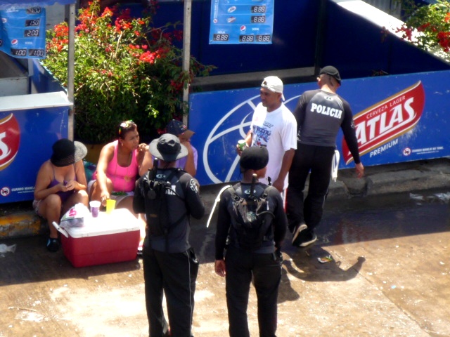 Los Carnavales Acuáticos de Penonomé, iniciaron este sábado con los tradicionales culecos, que se desarrollaron hasta las 3 de la tarde, hora en la que los participantes se dirigieron hacia el río Las Mendozas, a disfrutar del tradicional y folclórico paseo de las balsas. Las unidades policiales, junto a unidades de la Dirección Nacional de Frontera estuvieron desde temprano, listos y prestos a iniciar esta tarea; tarea que implicar un esfuerzo extra, sacrificios extras, pero satisfacción también extra, cuando, al finalizar la tarde, el comandante de la misión, pueda decir a sus superiores jerárquicos…"tarea cumplida, sin novedad". Así día tras día, cada vez más cansados, pero con la convicción de proteger y servir a los ciudadanos, las tareas diarias se van cumpliendo y Dios quiera, al finalizar estos carnavales, cada familia llegue completa a sus hogares y juntos disfrutar de un nuevo día. La Policía Nacional junto a sus colegas de la Dirección Nacional de Fronteras, estará allí, siempre listos, para dar lo mejor de si, para que todos puedan disfrutar de las actividades de diversión, pero siempre guardando la cordura y compostura, ante la ley. |