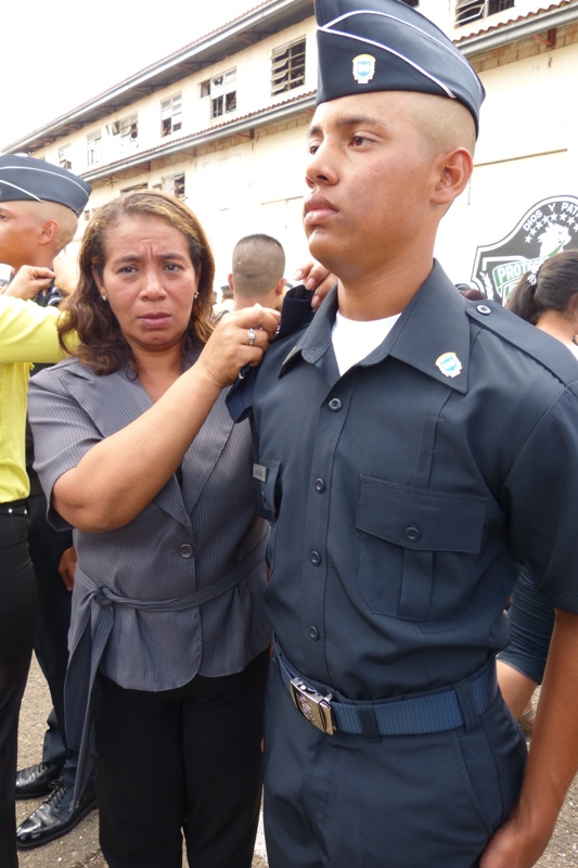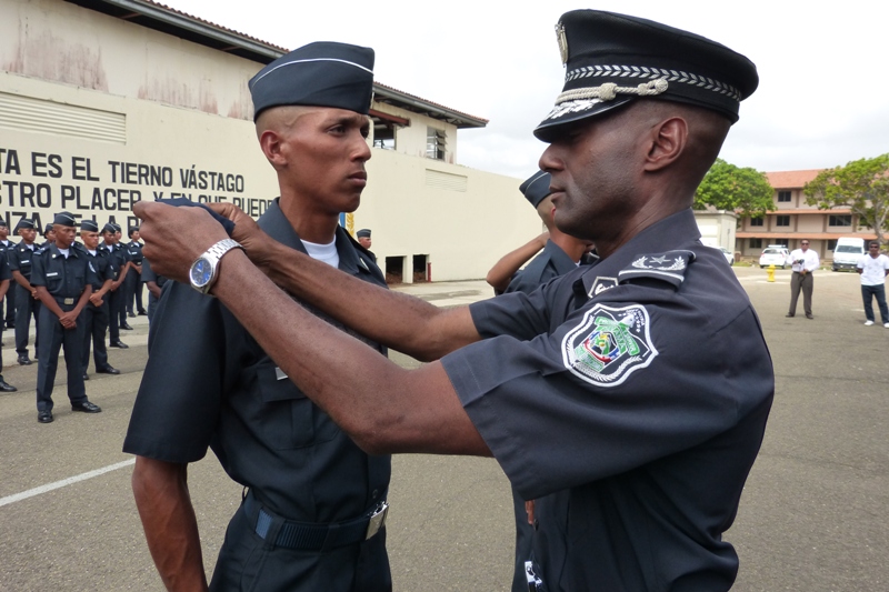 89 aspirantes de la XVII promoción ascendieron a Cadetes de Policía luego de cumplir y aprobar satisfactoriamente el periodo de tres meses adaptación y formación, cumpliendo con todos los requerimientos y exigencias vigentes en las áreas académicas, de conducta, aptitud policial y físicas. La imposición de las caponas fueron hechas por los padres de familia, quienes estaban visiblemente emocionados por el logro alcanzado de sus hijos luego de muchos días de esfuerzo, dedicación, sacrificio y abnegación. La ceremonia de ascenso fue realizada en el Centro de Enseñanza Superior Dr. Justo Arosemena, a cargo del Subcomisionado Ezequiel Carrizo quien felicitó e instó a los nuevos cadetes a seguir adelante dando pasos seguros que lo lleven alcanzar la meta trazada. Los Cadetes Kevin Ardines, Arielys Gómez, Carlos Caballero, Carlos González, Gabriel Mojica, Jonathan Cubilla, fueron ascendidos a la jerarquía de “distinguidos” por sus méritos académicos, conducta, dejando en evidencia lo mejor de su virtud personal para ejemplo de sus compañeros, elevado amor a la Patria, y orgullo de sus padres, los mismos tendrán la responsabilidad de ser guía y ejemplo de sus compañeros. El ascenso se considera un estímulo, con la finalidad de fortalecer el espíritu policial. El Centro de Enseñanza Superior exige a todo el personal de alféreces, cadetes y aspirantes a cadetes, cooperación y disciplina, actuando cada uno de ellos con absoluta responsabilidad en los estudios, en la conducta, en los actos del servicio y en el cumplimiento de sus deberes. Luego de concluido el periodo de adaptación, los nuevos Cadetes de Policía, iniciarán su periodo de clases dictadas por los profesores de la Facultad de Administración Pública de la Universidad de Panamá, por un periodo de 4 años para obtener el título de Licenciado en Administración Policial y por parte de la Policía Nacional el rango de Subteniente. La misión del Centro de Enseñanza Superior es graduar a Oficiales de Policía íntegros, al servicio de la Patria, con el objetivo de llenar las necesidades propias de la comunidad. |