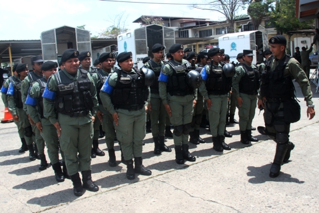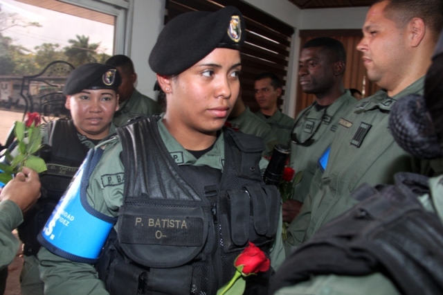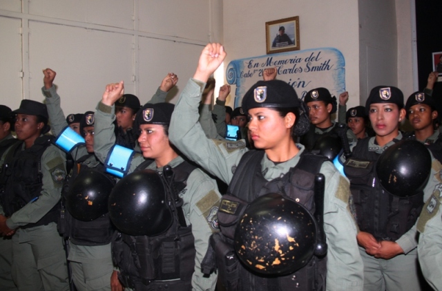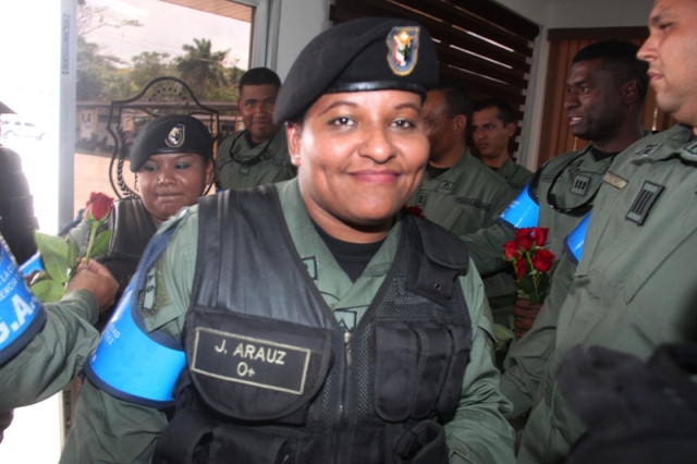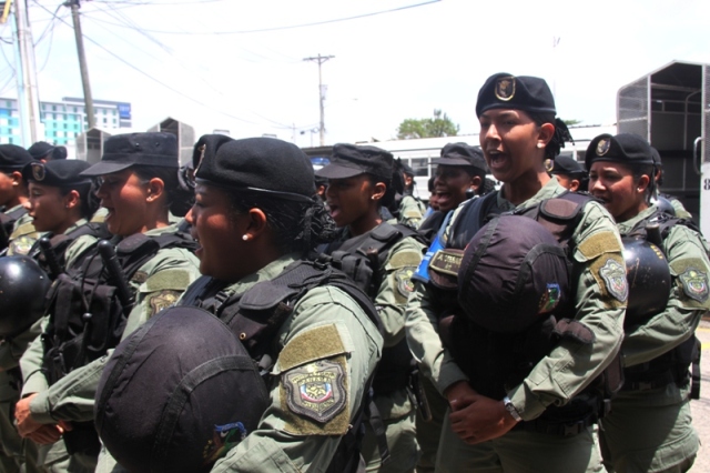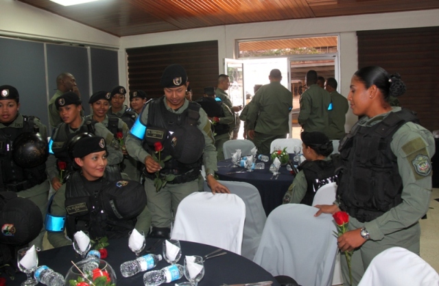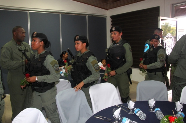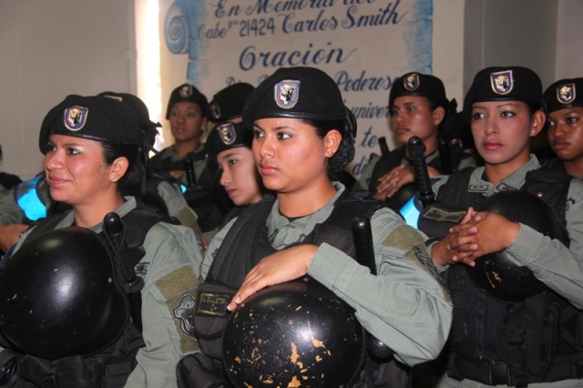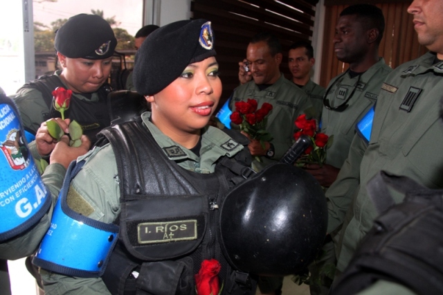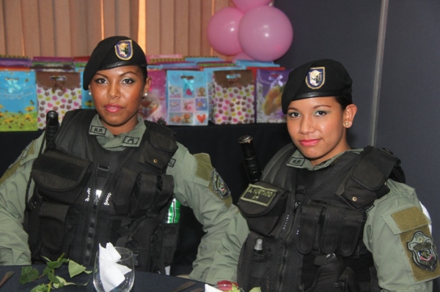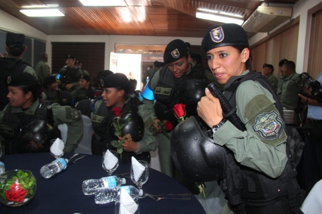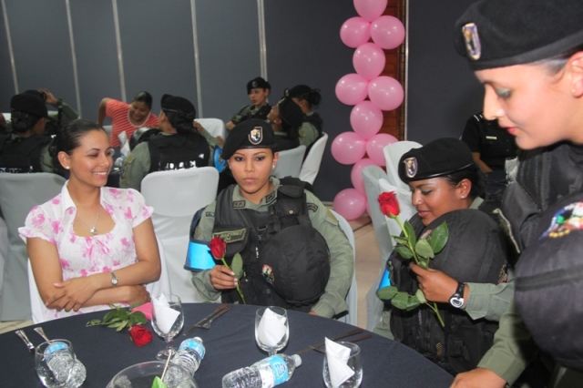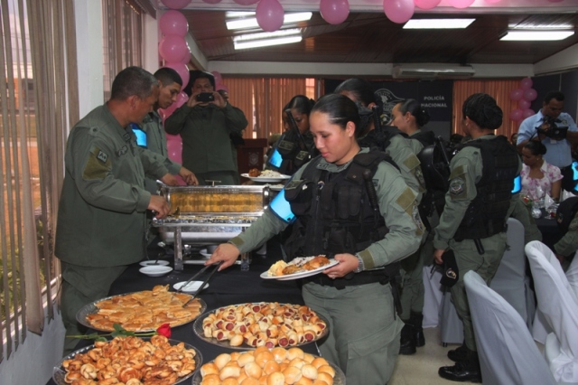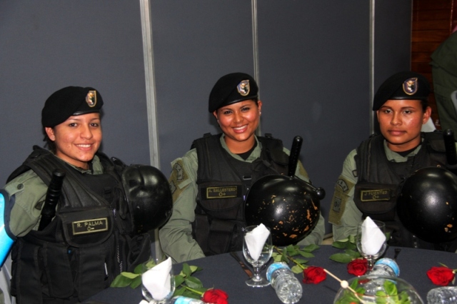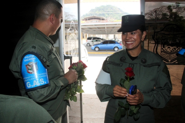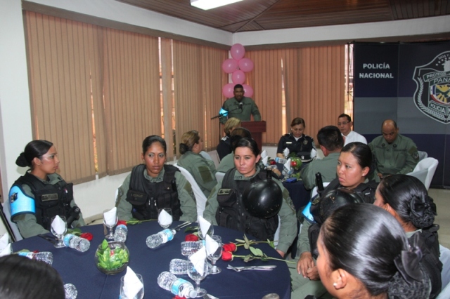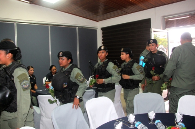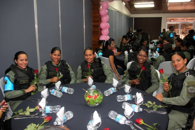 No es el día de los inocentes, tampoco el día de las madres, pero este grupo de uniformadas fueron sorprendidas por la institución en celebración del Día Internacional de la Mujer. Alrededor de las 11:30 de la mañana del viernes siete de marzo abordaron, como de costumbre, un autobús para dirigirse a un operativo. Todas listas con sus implementos de trabajo completos y armadas de valor. Esa era la consigna. Lo que ellas no esperaban fue verse de regreso a la sede principal de Ancón, bajo la excusa de retorno por búsquedas de unidades extras necesarias en el operativo, para después beneficiarse de tremendo agasajo y en compañía altas autoridades de la Policía Nacional, entre ellos el Director Nacional de Operaciones, Comisionado Miguel García y el Jefe del GAS, Mayor Alejandro Urriola. Lógicamente lo del operativo era totalmente falso. Cabe mencionar que, durante el abordaje, mientras salían y se movilizaban en el autobús lo que pasaba por sus mentes era muy diferente a lo que les resultó al final, cuando todo aquel nerviosismo, adrenalina e ímpetu quedaron en expresiones de agradecimiento, alegría y satisfacción con la Policía. El actual protagonismo de la mujer policía ha permitido a la primera institución de seguridad pública conquistar territorios, avanzar en el proceso histórico institucional, combatiendo los estereotipos de género. |