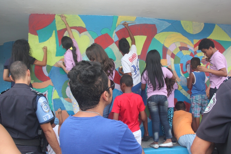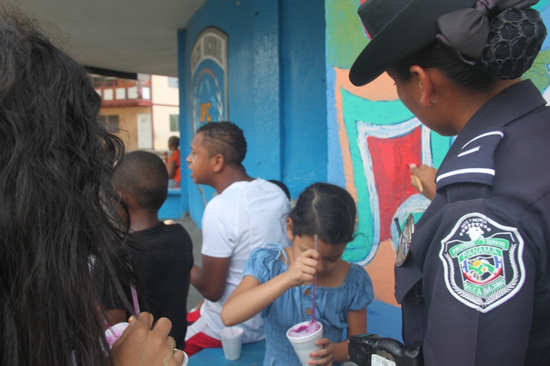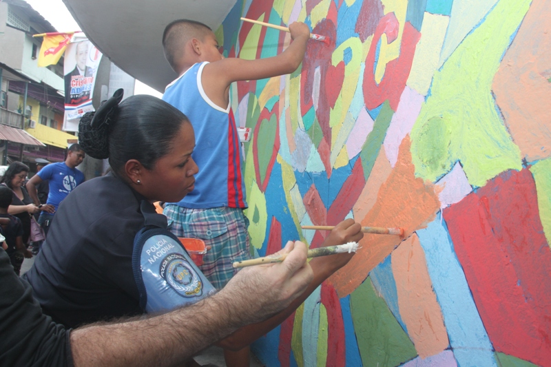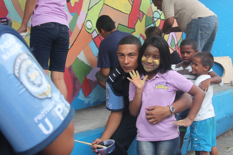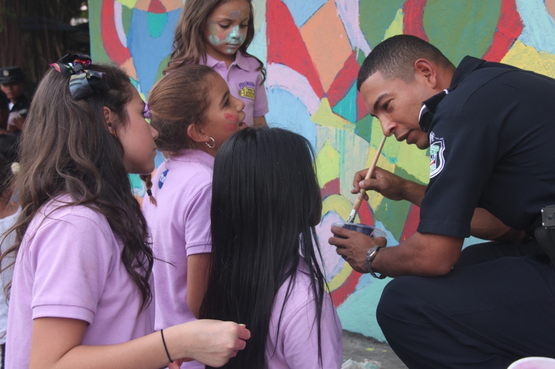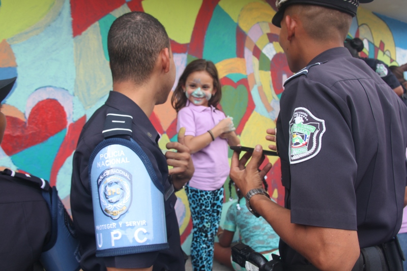 Niños de El Chorrillo junto a los concursantes de Canta Conmigo dieron rienda a su imaginación y a su talento artístico, cuando con pinceles y pintura en mano, le dieron vida a uno de los muros de la sede de la Unidad Preventiva Comunitaria de la Policía Nacional que se encuentra en este corregimiento. Esta pared de cemento se convirtió en el lienzo perfecto, donde los pequeños acompañados por los uniformados, expresaron a través del color sus sueños de un mundo en amor y paz. Con esta actividad los niños del barrio de El Chorrillo pasaron un rato ameno y diferente, además de conocer a los pequeños concursantes de este concurso musical que organiza la Televisora Nacional TVN. La Policía Nacional mediante el trabajo que realiza la UPC, promueve y fortalece los valores, involucrando a los niños en actividades que desarrollen su potencial artístico y refuerzan su autoestima; procurando también de esta manera la convivencia pacífica.