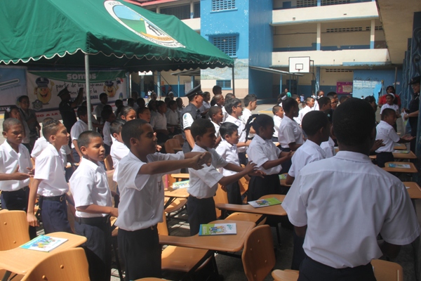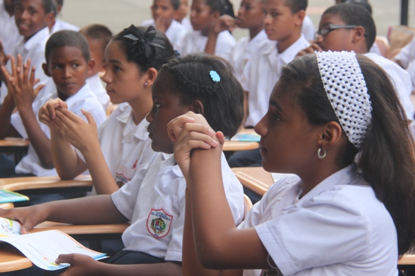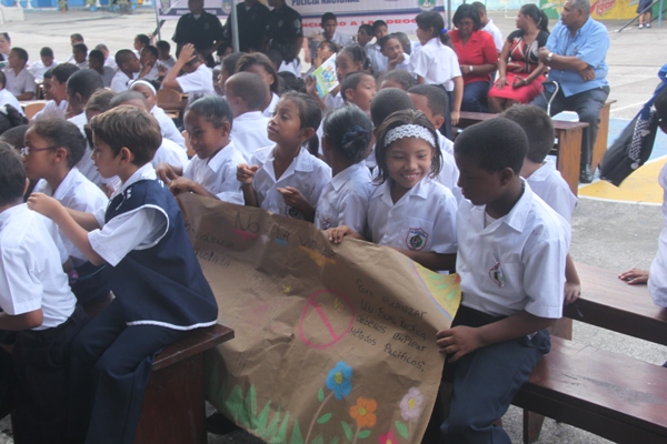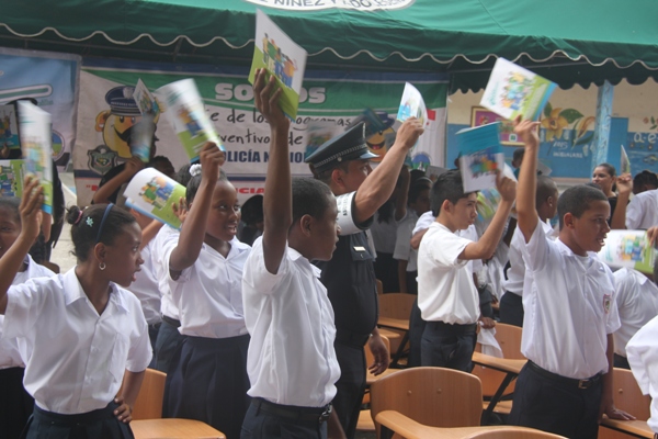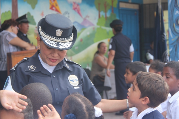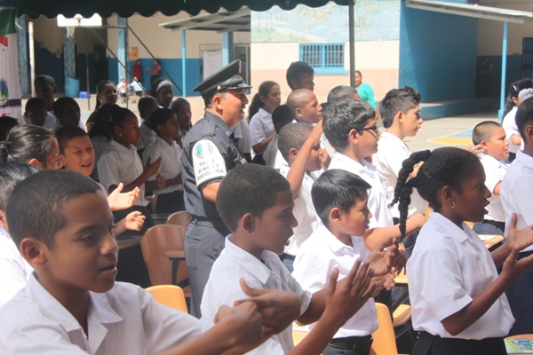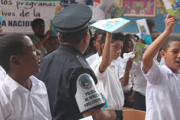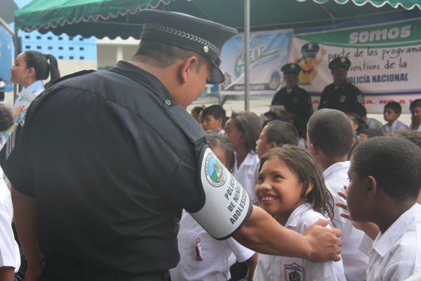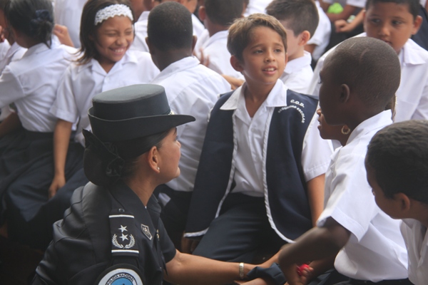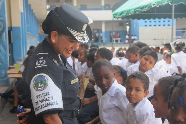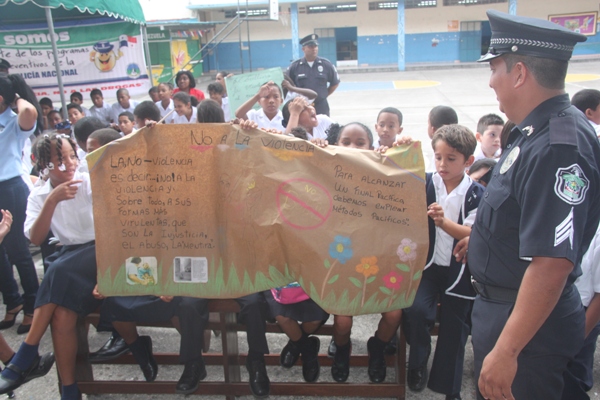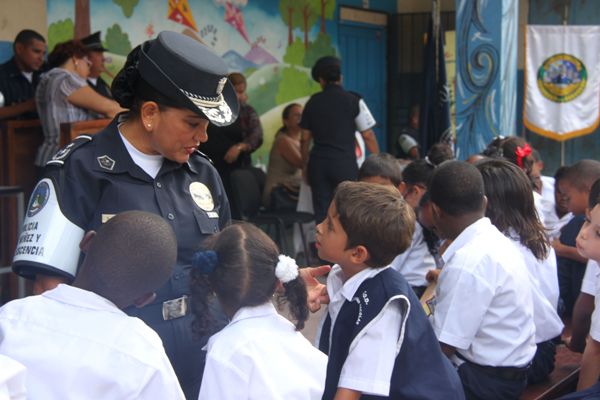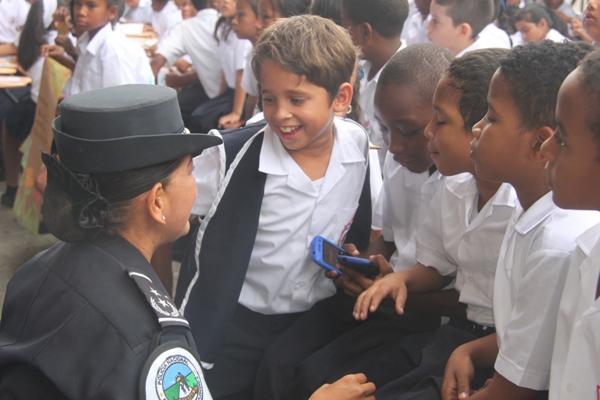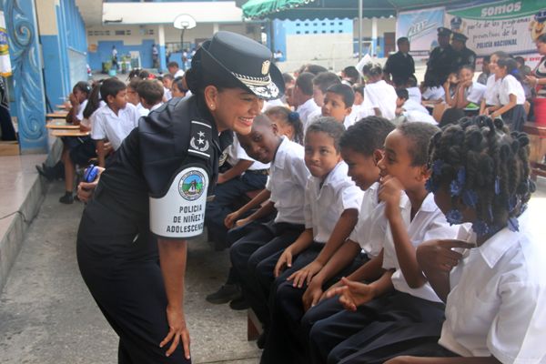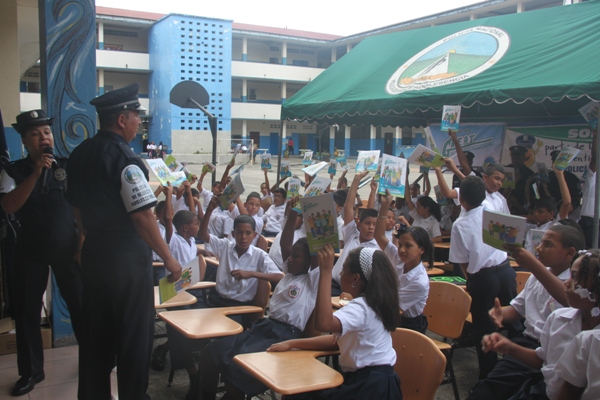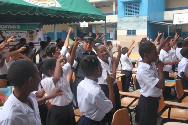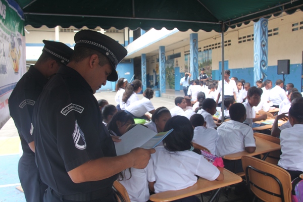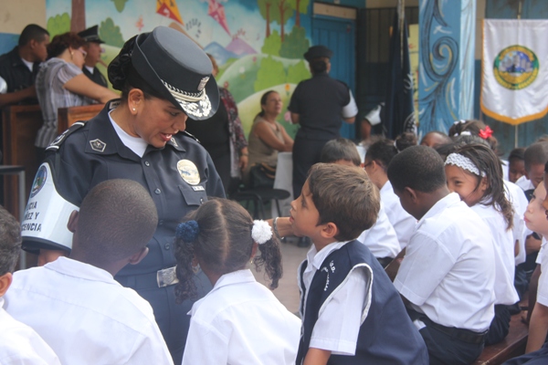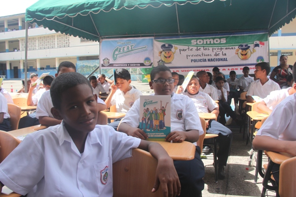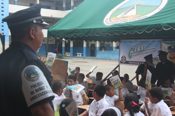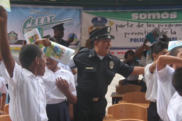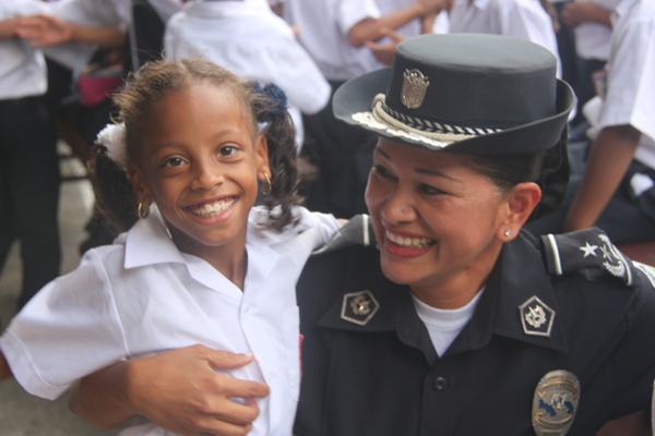 Unos 75 niños y niñas que cursan el tercer grado de la Escuela República de Venezuela ubicada en Calidonia recibieron por primera vez información acerca del programa G.R.E.A.T que en sus siglas en inglés significa “Educación y Entrenamiento en Resistencia a Pandillas”. Ahora la Policía de Niñez y Adolescencia, del Área Oeste brindará asistencia preventiva en dicho plantel. Con una invocación religiosa, canticos, palabras de agradecimiento, y explicaciones del programa que busca alejar a los jóvenes de la violencia, drogas, e inclusión a las pandillas la Policía Nacional, inauguró el programa G.R.E.A.T. Los presentes portaban pancartas con mensajes alusivos en rechazo a la violencia. El momento fue propicio para la entrega de mochilas con útiles escolares, a cada estudiante que cursaban desde el tercer grado hasta sexto grado donación que realizaron en conjunto Policía Nacional y el Movimiento Nueva Generación, en esta actividad los pequeños no ocultaron la alegría de recibir la visita de las unidades policiales, los consejos que les ofrecieron y los obsequios que les llevaron. La Policía de la Niñez y Adolescencia ha jugado un papel importante, interviniendo en las escuelas y la comunidad con un modelo social con vocación de servicio que le permite dialogar y ser escuchada en este caso por los pequeños de la casa, padres de familia y personal docente. Estos programas han ayudado a miles de jóvenes, quienes han lograron alejarse de las drogas y pandillas, participando continuamente en charlas motivacionales sobre valores, superación personal y experiencia de vida. Estos encuentros son espacios para que se expresen y sientan parte de la comunidad. A la actividad se dieron cita autoridades como la Subcomisionada, Erly Miranda, jefa de la Policía de la Niñez y Adolescencia, Subcomisionado, Jorge Luís Escobar, jefe del puesto policial de Calidonia, sargento primero Gregorio González, encargado de impartir las charlas de prevención en este colegio, sargento primero Beatriz Pimentel, Iris Amaya, directora de la Escuela República de Venezuela, maestros e invitados especiales. |