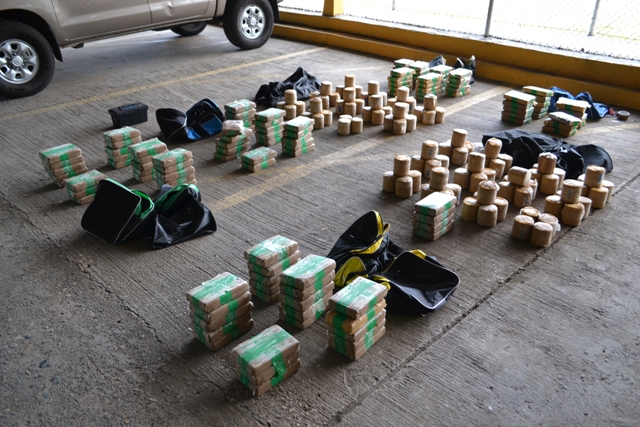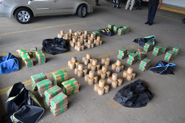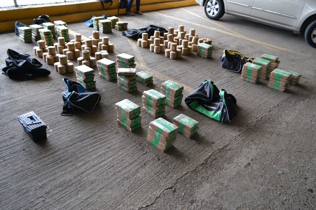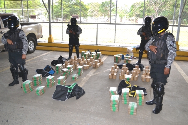 Unidades del Servicio Motorizado Linces de la Policía Nacional lograron el decomiso de más de 200 paquetes de presunta droga dentro de un auto al cual dieron la voz de alto, tras percibir anormalidades durante su circulación por la Avenida Balboa. El vehículo marca Honda color blanco era conducido por un sujeto de nacionalidad panameña de 23 años de edad, el mismo solo mantenía la licencia de conducir como único documento personal al momento de su verificación. Durante la revisión del auto por los Linces, se hallaron siete maletines con dudoso contenido, y que además el joven conductor no pudo explicar. Manteniendo un posible caso de tráfico de sustancias ilícitas, las unidades recibieron el apoyo de sus compañeros de la Dirección de Investigación Judicial y personal de la Fiscalía de Drogas quienes procedieron a la revisión de las bolsas. Unos 231 paquetes de forma rectangulares y redondos fueron encontrados dentro de los maletines que estaban siendo transportados en el vehículo retenido. Además se decomisó un revolver calibre 38 con cinco municiones sin detonar. Una vez encontrada la evidencia, se remitió el caso a las instancias correspondientes quienes continuarán con las investigaciones por el presunto delito de tráfico de drogas. Se investigan la vinculación de otras personas y el destino que llevaba la sustancia. La Policía Nacional cuenta con unidades capacitadas en la percepción contra el trasiego de sustancias ilícitas y armas de fuego que dan como resultados este tipo de decomisos. |