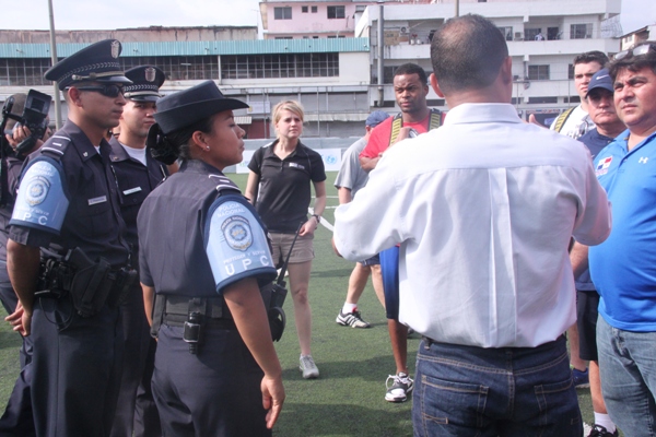 Varios niños del sector de Barraza recibieron instrucción profesional con figuras de la NFL, que se tomaron El Chorrillo como parte del programa de prevención que adelanta la Unidad Preventiva Comunitaria (UPC), de El Chorrillo y el Movimiento Nueva Generación. El encuentro se desarrolló en una cancha de fútbol ubicada en Plaza Amador donde acudieron varios jóvenes en compañía de adultos quienes también participaron de las capacitaciones y explicaciones que los expertos les ofrecieron. El entrenamiento ofrecido a los pequeños entre las edades de 7 a 10 años de edad se dio de manera gratuita donde se conoció impulsarán varias categorías en este sector. |