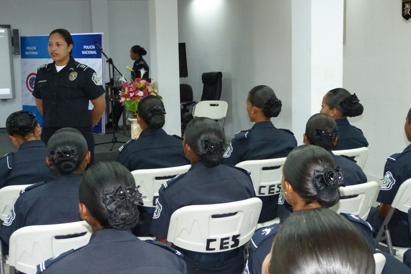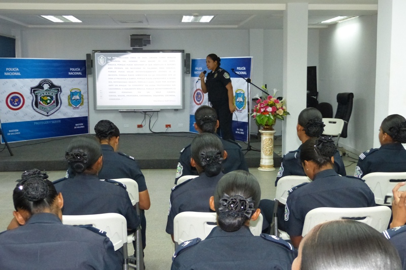 Las cadetes del Centro de Enseñanza Superior Dr. Justo Arosemena de la Policía Nacional, recibieron este martes 11 de marzo por parte de la Capitana Itzel Calles Jefa del departamento de Bienestar Laboral una charla sobre la Mujer en la Policía Nacional, en el marco de la celebración del Día Internacional de la Mujer. Actividad que fue organizada por la Lic Rosa de Herrera del Departamento de Bienestar Laboral. Un 8 de marzo de 1857, un grupo de obreras textiles tomó la decisión de salir a las calles de Nueva York a protestar por las míseras condiciones en las que trabajaban. Distintos movimientos se sucedieron a partir de esa fecha. El 5 de marzo de 1908, Nueva York fue escenario de nuevo de una huelga polémica para aquellos tiempos. Un grupo de mujeres reclamaba la igualdad salarial, la disminución de la jornada laboral a 10 horas y un tiempo para poder dar de mamar a sus hijos. Durante esa huelga, perecieron más de un centenar de mujeres quemadas en una fábrica de Sirtwoot Cotton, en un incendio que se atribuyó al dueño de la fábrica como respuesta a la huelga. La capitana Calle presentó un video sobre las luchas históricas de las mujeres en diferentes países. No fue hasta en 1947 cuando el Presidente José Antonio Remón Cantera, quien inicia un plan modernización cambiando la Policía Nacional a Guardia Nacional y le da oportunidad a la mujer a ingresar a la institución, además de enviar oficiales a especializarse fuera del país.