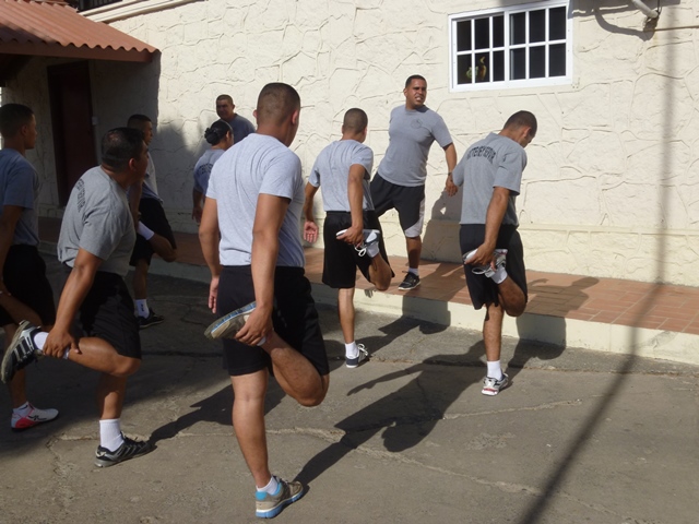 Al mando del Teniente José Gómez y el Subteniente Victoriano Cedeño unidades que forman parte de los servicios policiales especiales de la 7ma Zona desde tempranas horas inician con el acondicionamiento físico con miras a la prueba física que se desarrolla anualmente.