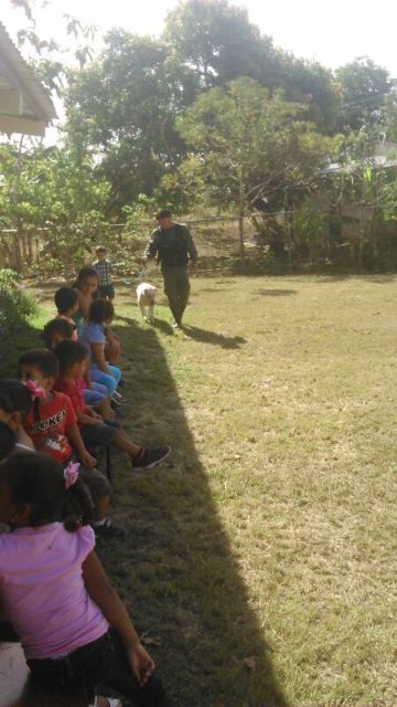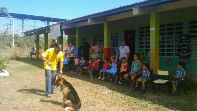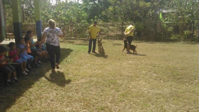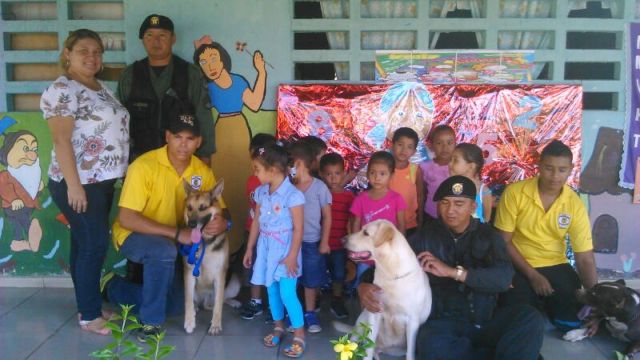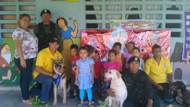 Niños del Centro Parvulario de Pesé, en la provincia de Herrera, disfrutaron como nunca de una día de esparcimiento gracias a la labor de los miembros de la Unidad Canina (UCAN), y del Grupo Juvenil Canino (GRUJUCAN) de la Policía Nacional. Unos 14 niños y niñas entre los 4 a 6 años, del Centro Parvulario se divirtieron y pasaron una mañana amena con la llegada de los perros de la Unidad Canina y los jóvenes del Grupo Juvenil Canino de Herrera quienes hicieron galas entre los pequeñines de las habilidades de estos canes que divirtieron a estos niños quienes con aplausos y gritos se gozaron y pedían que lo hicieran otra vez. La directora del Centro Parvulario de Pese la maestra Yessenia Pinto agradeció a todos por su apoyo e instó a seguir con este tipo de actividades que aparte de entretener a los niños dejan en alto la labor policial. |