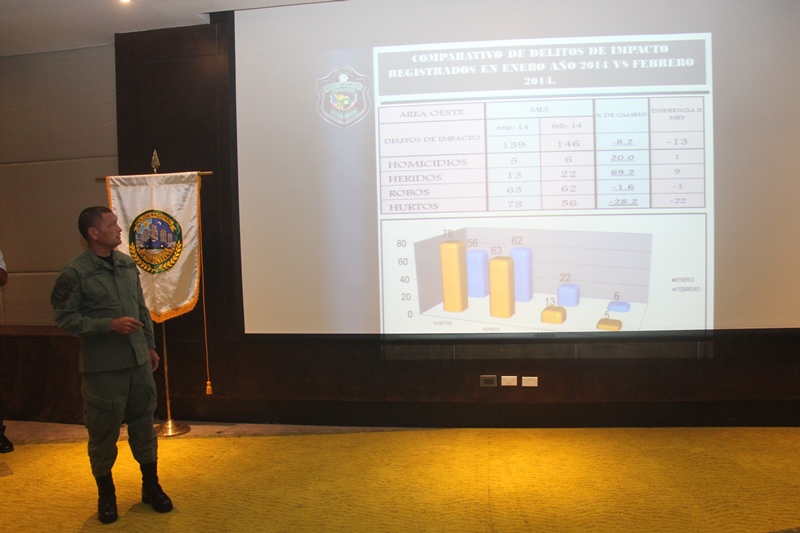 La Zona de Policía Metropolitana Oeste con un área de responsabilidad en materia de seguridad que cubre 12 corregimientos realizó una rendición de cuentas en el Hotel Westin Panamá, ubicado en Costa del Este, ante diversos sectores de la sociedad panameña. El Subcomisionado Carlos Ortiz, Jefe de la Zona de Policía Metropolitana Oeste resaltó que el arduo trabajo de los diversos componentes de esta zona policial se ha reflejado en la disminución de los cuatro delitos de impactos, en cada uno de los corregimientos que contienen en entorno, áreas bancarias, industriales, comerciales, escuelas, iglesias, múltiples edificios y condominios además de barriadas y centros comerciales. Igualmente reconoció que gran parte del éxito en esta disminución se debe a la colaboración de la ciudadanía que se ha integrado a la labor policial a través de la inauguración de los Programas, Comercios, Vecinos y Transportistas Vigilantes, cuyos esfuerzos incluyen la implementación de programas de Desarrollo Humano. Para el Sub-Comisionado Ortiz no menos importante es la labor que desarrolla la Unidad Preventiva Comunitaria en comunidades que históricamente han sido consideradas áreas rojas y que ahora reflejan una drástica disminución en materia delictiva, si se comparan las estadísticas con años anteriores. Para el mes de Febrero del año 2014 se refleja una disminución de 9 homicidios en comparación con el año 2013. |