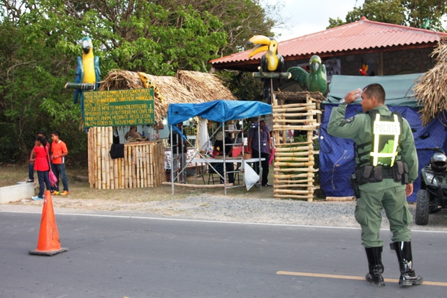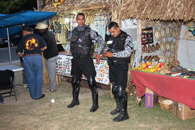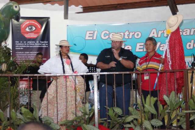 Como parte del Programa Artesanía, Cultura y Desarrollo en la Provincia de Coclé fue realizada durante una semana la Feria Artesanal y Cultural en el Valle de Antón, la cual contó con el apoyo y participación activa de La Policía Nacional. Las diferentes exposiciones fluyeron de manera exitosa donde más de 30 artesanos, productores, y demás trabajadores, presentaron sus nuevas creaciones con atractivas ofertas, al mismo tiempo que mostraron al público las diferentes técnicas que utilizan para la elaboración de sus productos. La Feria resultó una oportunidad para que los artesanos pusieran en práctica los nuevos conocimientos adquiridos en los talleres organizados para ellos como parte del programa social. La apertura de la feria se convirtió en un momento muy significativo para el pueblo antonero, los artesanos, residentes del entorno y público en general, quienes se dieron cita para disfrutar junto a su familia, nos detallaron que actividades como estas deberían de realizarse con más frecuencia. En medio de la celebración se realizó un homenaje al Subcomisionado, Bolívar Lasso, jefe del Departamento de Seguridad Ciudadana de la Policía Nacional, quién fue el abanderado en esta feria; en un aire de admiración y agradecimiento se dejaron oír palabras que expresaban alegría y satisfacción por contar con esa estrecha relación Policía-Comunidad. El Subcomisionado, Bolívar Lasso, lleva dos años consecutivos trabajando mancomunadamente con el comité organizador, preservando la seguridad e instruyéndolos sobre los diferentes programas que adelanta esta institución, como son, Vecinos Vigilantes, Comercios Vigilantes entre otros. En reconocimiento le fue entregada la bandera que identificaba al comité organizador artesanal y cultural, donde se realizó un recorrido por los terrenos de la feria junto a la reina, y al conjunto folclórico de El Valle. En el lugar se respiraba un ambiente familiar, lejos del licor, del peligro y la violencia, donde asistieron alrededor de 300 personas que pudieron apreciar y comprar las creaciones realizadas por los expositores. Los niños y niñas también tuvieron su espacio, pudieron disfrutar de talleres gratuitos, asimismo se entretuvieron con los tradicionales juegos, palomitas de maíz, y algodones de azúcar. Finalmente, La orquesta de la Policía Nacional, deleitó a los presentes los puso a cantar ofreciéndoles variados repertorios entre ellas las más sonadas del patio, el público se mostró complacido se puso de pie y se acercó a la tarima para corear junto a los integrantes de la orquesta, mientras las demás unidades policiales en este caso la Unidad de los Linces, custodiaban la entrada y salida de la feria.