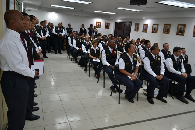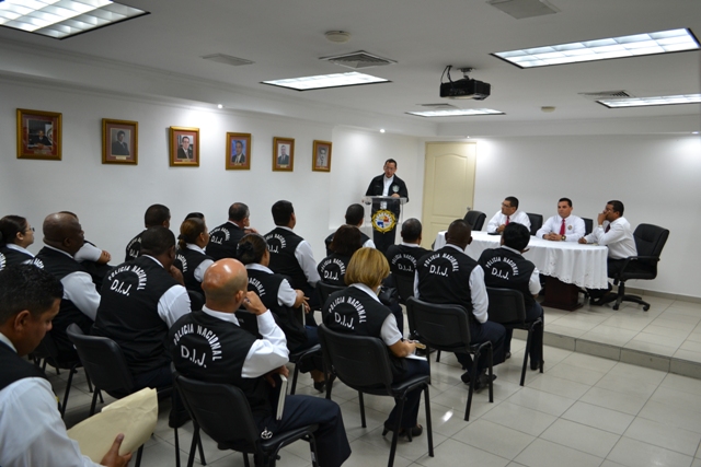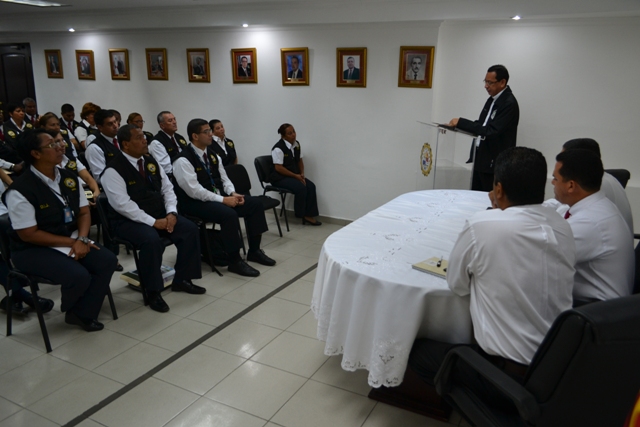 La reunión de oficiales que se realiza cada lunes en la Dirección de Investigación Judicial para la programación de actividades administrativas y operativas de la semana, contó con la participación del capellán de la Policía Nacional Edgar Flores quien amenizó la misma con un mensaje dirigido a fortalecer la fe de cada uno y el valor de la vida familiar. El capellán trazó su mensaje en recordar a las unidades el liderazgo y el apoyo en la palabra de Dios. Si una familia promueve el amor en sus miembros, no sólo conseguirán estabilidad emocional en todos, sino que fortalecerán los lazos de fraternidad ante la sociedad. En el salón se dieron cita más de 50 oficiales de diferentes subdij, divisiones y departamentos, acompañados por el subdirector de la DIJ Subcomisionado Miguel López, el Subcomisionado Jorge Rodríguez y el Subcomisionado Flavio Vergara. |