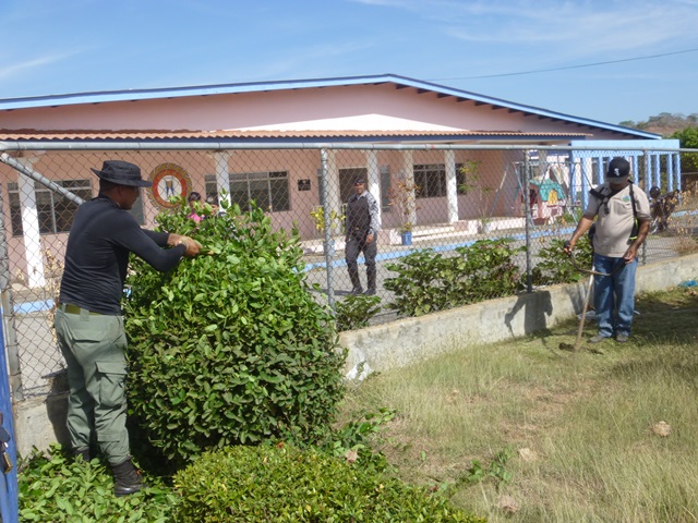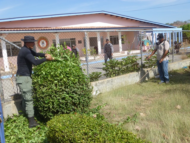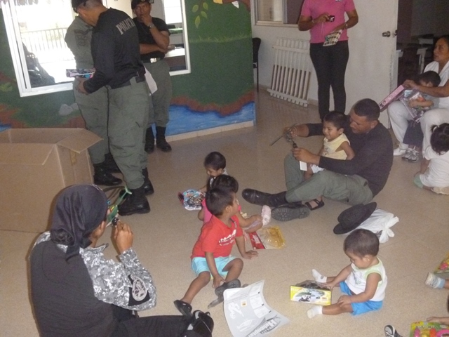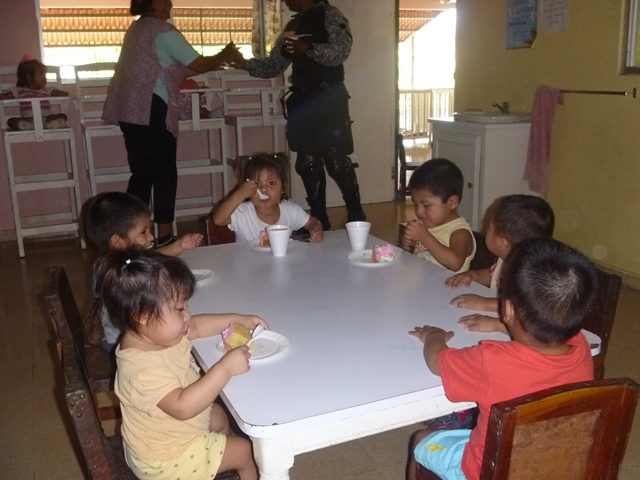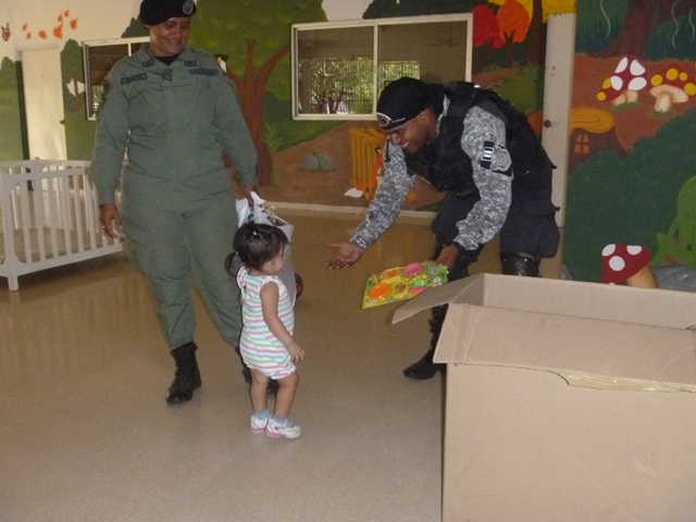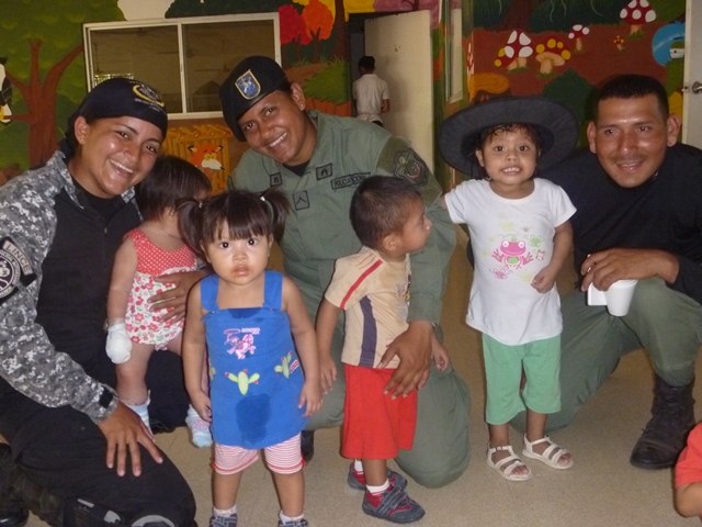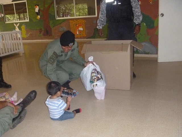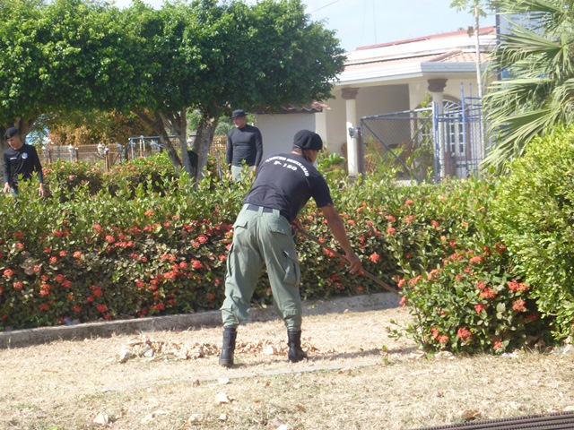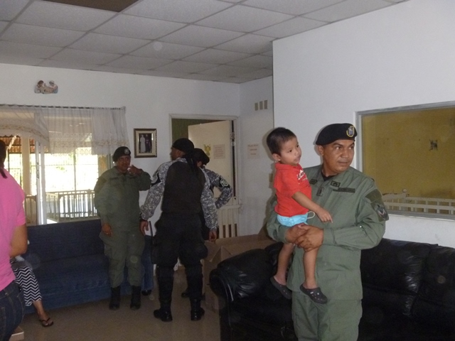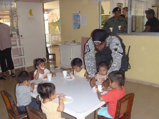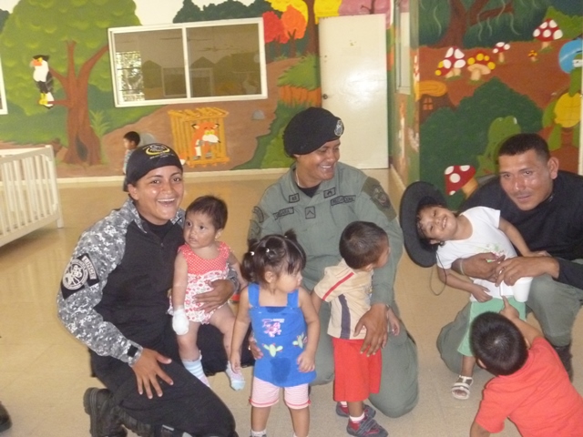 Unidades policiales que forman parte de grupo GAR Y LINCES de la 7ma Zona de Policía de Los Santos realizaron el día viernes 14 de marzo de una jornada de limpieza en Nutre Hogar. Las unidades policiales se formaron en grupo siendo su principal objetivo el apoyo con la limpieza de las áreas verdes de las instalaciones de Nutre Hogar - Las Tablas, pero a la vez llevaron alegría, sorpresas y golosinas a estos niños que en su gran mayoría son provenientes de las áreas comarcales del país, con un alto índice de desnutrición. Compartieron momentos de alegría con estos niños, donde cada unidad policial adoptó por un día a uno de los pequeñines del centro, quienes le hicieron entrega de regalos y muestras de cariño y afecto. Los colaboradores del centro dieron su agradecimiento, manifestando su alegría por tan humilde muestra por parte de la Policía Nacional con quien sabe que cuentan en todo momento. |
