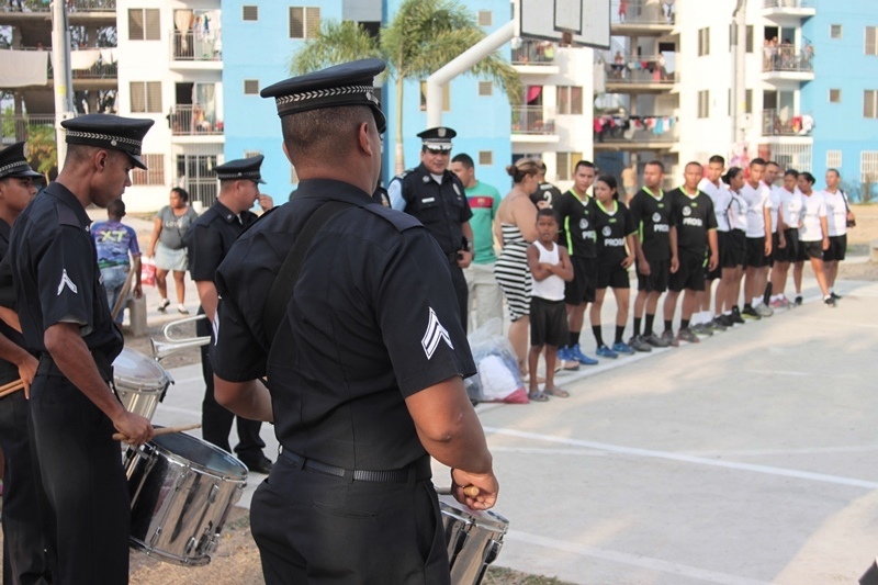 A través de los tiempos el deporte, ha tenido gran influencia en la sociedad, efectos tangibles y predominantemente positivos se han logrado, es por ello que basado en estos resultados, muy optimistas la Policía Nacional, mediante su Unidad Preventiva Comunitaria (UPC), inaugura su Primera Liga de Voleibol en los predios de la cancha del sector de Curundú, denominada: “COPA UPC CURUNDÚ”. Esta actividad deportiva contempla la unificación de las comunidades y la integración a prácticas recreativas donde la paz de ambientes más seguros y de armónica convivencia en conjunto con los comercios del área, es la finalidad primordial de la realización de este evento Esta enérgica actividad durará dos (2) meses, efectuándose los jueves y viernes de cada semana. Con las notas musicales contagiosas de La Banda de Música de la Policía Nacional, se dio inicio a esta inauguración, en donde tuvo como primer punto la entrega de uniformes a los equipos comunitarios por parte de la UPC. Integraran esta Copa de voleibol, doce (12) equipos integrados de la siguiente manera: Seis (6) Comunitarios, donde participaran las siguientes comunidades: Santa Cruz A y B,Llano Bonito,La Hortensia, Cabo Verde, Transporte y Taller Cuatro (4) empresas:Laboratorios Rigar,Grupo Primavera, Maduro,Santa Fe Dos (2) Policiales:UPC Chorrillo Y UPC Curundú En medio de la alegría de los presentes y el ambiente deportivo que se disfrutaba, el Mayor Daniel Arroyo, Jefe de la UPC Curundú ratificó la finalidad de esta iniciativa expresando a la comunidad y a los comercios, el mensaje… “La UPC sigue trabajando por ustedes para desarrollar esos espacios y actividades de convivencia pacífica” puntualizó el mayor Arroyo quien también mencionó, que se reconocerá a los más destacados de esta copa. El silbato suena, e inicia el partido, de esta manera, se da por inaugurada la copa comunitaria UPC, que de seguro llenara de mucha alegría a los residentes de Curundú.