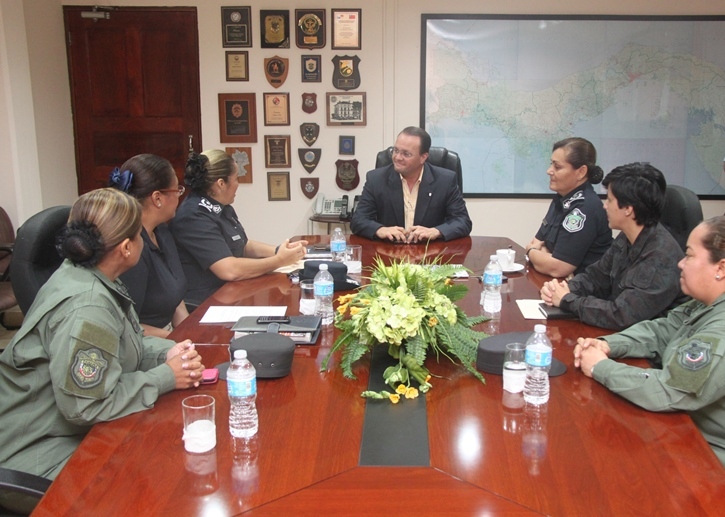 El Director de la Policía Nacional Ingeniero Julio Armando Moltó recibió a un grupo de altas oficiales quienes buscan organizar un Primer Encuentro de Mujeres de la Fuerza Pública de la República de Panamá. El Director de la Policía Nacional, Julio Armando Moltó, agradeció a las damas que lo tomaran en cuenta para gestionar esta iniciativa que no solo vio con buenos ojos, sino que la calificó de muy necesaria, aprovechando la ocasión para felicitarlas por el alto esfuerzo y profesionalismo en el desempeño diario de las labores que realizan todas las mujeres que integran los estamentos de seguridad nacional. Tras recomendarles la inclusión de expertos de ambos sexos en la disertación de expositores, les recordó que bajo su administración se está reforzando continuamente el tema de Género. Sexo y género son dos conceptos diferentes. El sexo está determinado por las características biológicas y fisiológicas, divide a las personas en dos grupos: Mujeres y Hombres. El Género, en cambio, se refiere al conjunto de características sociales y culturales asignadas a las personas en función de su sexo. En esta actividad participarán oficiales femeninas del Servicio de Protección Institucional (S.P.I.) ; el Servicio Nacional de Fronteras (Senafront); el Servicio Nacional Aeronaval (SENAN) y la Policía Nacional de Panamá. Este encuentro tendrá como finalidad el promover y fortalecer la dinámica laboral y a su vez elaborar estrategias que permitan mejorar el desempeño y profesionalismo de las femeninas que laboran dentro de los estamentos de seguridad del Estado. En la mencionada reunión estuvieron presentes las Comisionadas Oris Jaén; y Elsa Garzón; además de las Subcomisionadas Elida Ortega, Aida de Jaén, Mariví González y la Capitana del SPI Linett Guevara. |