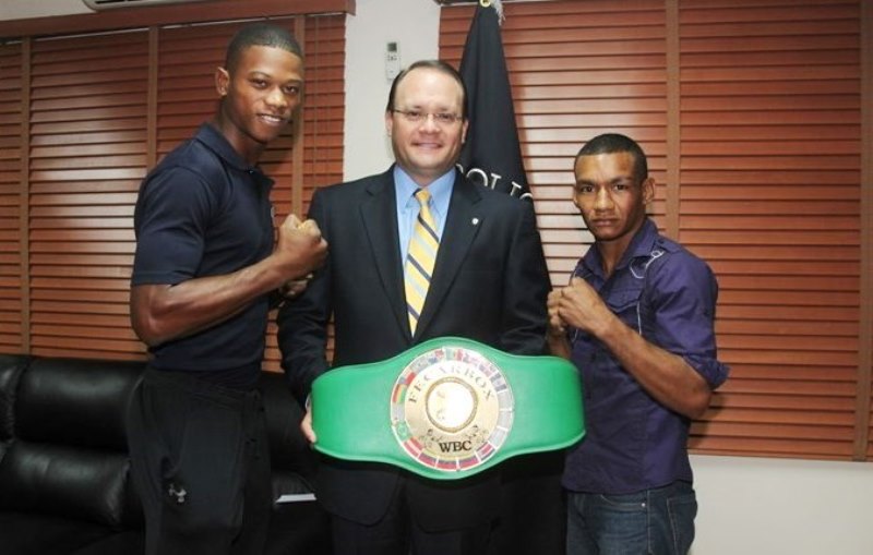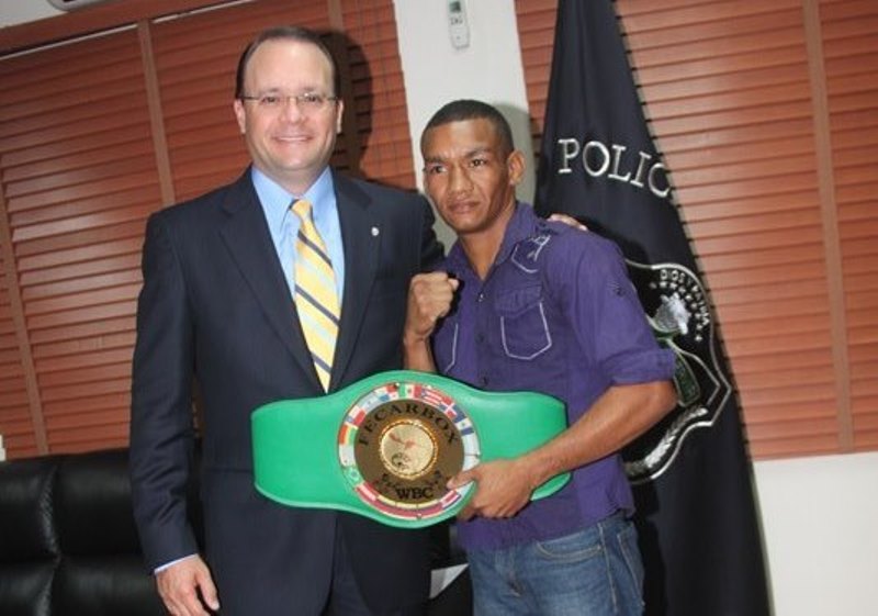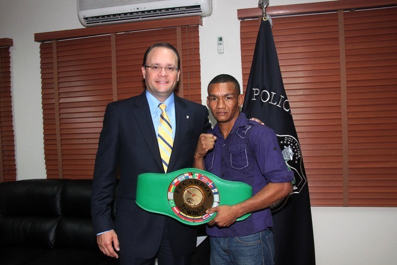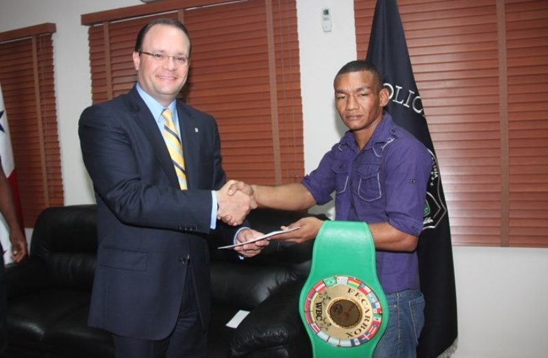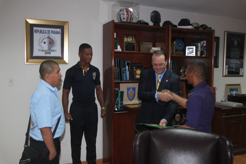 Eric Walters y Carlos “Arañita” Ortega, fueron recibidos en el despacho superior por el director general de la Policía Nacional, ingeniero Julio Moltò, a quien con mucho orgullo le mostraron los cinturones obtenidos como campeones de peso liviano tras haber triunfado en el evento boxístico "Dominio en Riezgo", realizado este sábado 22 de marzo en la Arena Roberto Durán. Estos atletas policiales, han demostrado su talento como pugilistas dejando en alto a la primera institución de seguridad, posesionándose un lugar de prestigio en el boxeo nacional. Por su parte, el ing. Moltó les entregó bonos, asegurando que la Policía Nacional continuará apoyándolos en su entrenamiento para los próximos eventos. Ambos pugilistas, reiteraron su agradecimiento al jefe policial y a todos sus compañeros por el respaldo brindado y prometieron seguir preparándose con disciplina y entrega para obtener otros triunfos que llenen de alegría y orgullo a la gran familia de la Policía Nacional.