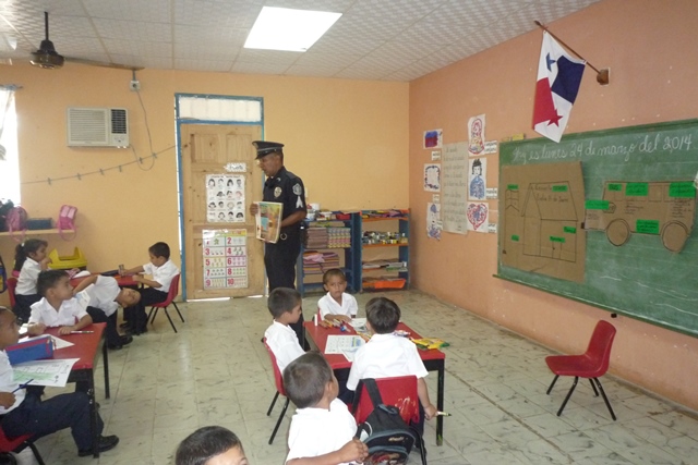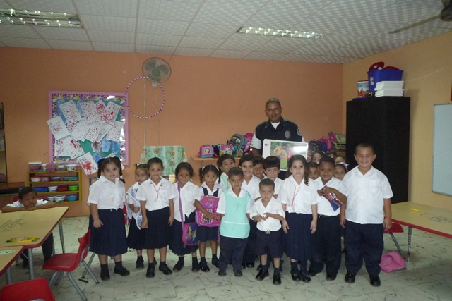 El Departamento de Niñez y Adolescencia de la 7ma Zona de Policía de Los Santos dio inicio al Programa Niños y Niñas Seguros el cual busca que los menores de 5 años puedan identificar los peligros en la calle. Este programa va dirigido especialmente a los niños que cursan el grado escolar de kínder, ya que estos pequeñines son personas vulnerables dentro de nuestra sociedad. El Sargento 2° Oscar Guerra tiene como misión el cumplir a cabalidad con el objetivo principal del programa, que es el poder orientar a estos niños de los peligros latentes de la sociedad, brindándoles orientaciones como el no conversar con personas extrañas, no aceptar nada que le ofrezca un desconocido, no subir a autos de personas desconocidas o sin la previa autorización de sus padres, hacer caso a sus padres y maestros, entre otras recomendaciones. Todos esto temas por su corta edad se le instruye de forma didáctica con láminas, videos y dinámicas, que hacen que la charla sea divertida para los pequeños y a su vez se logre que la capten con facilidad. |