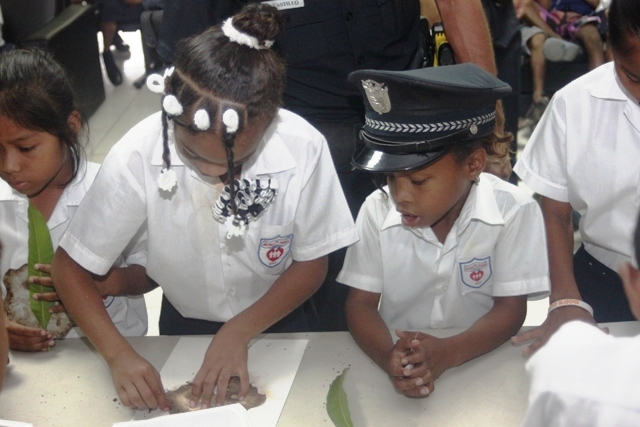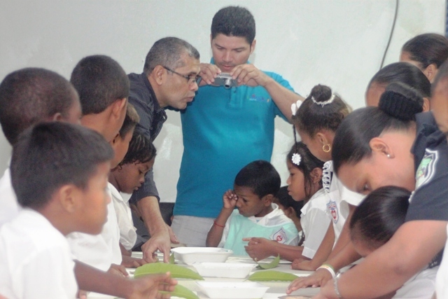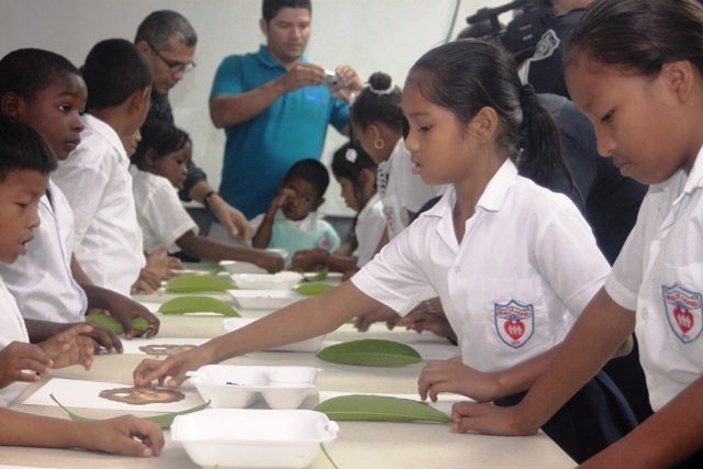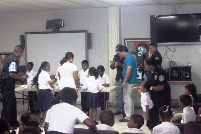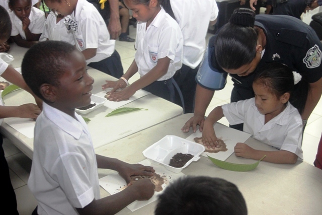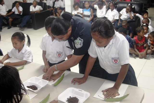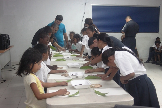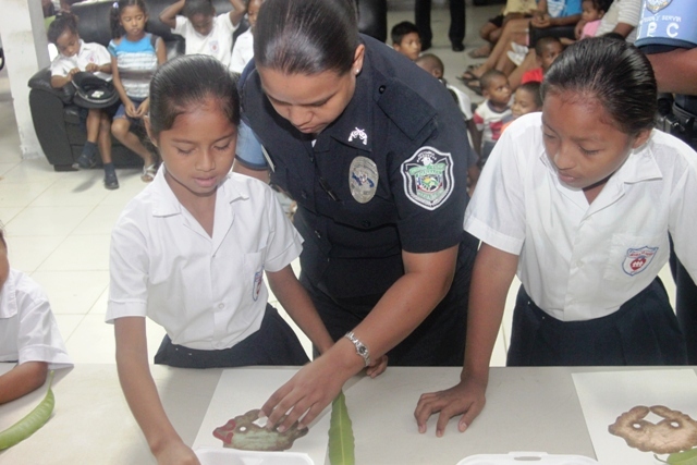 Actividad innovadora que contribuye con el desarrollo de la Unidad Preventiva Comunitaria, denominado “Arte Tierra”, aprovecharon de manera plena un grupo estudiantes de la Escuela Fe y Alegría. En la mañana del día jueves 27 de marzo, ingresaron al aula taller de la UPC de Curundú, en medio de sonrisas y expectativas, este grupo de niños que van de kínder a cuarto grado, que se encuentran en riesgo social y que por primera vez conocerían la técnica de pintura con tierra. El Subteniente Teodoro Gómez, organizó la actividad, convocó en conjunto con su equipo de trabajo a los participantes del taller, movido por la necesidad de mantener a los niños interesados en participar de las actividades que forman parte de la UPC y en vista de que es necesaria la motivación haciendo uso de actividades innovadoras e interesantes. “El licenciado Iván Rodríguez me presentó la propuesta de taller con tierra e inmediatamente me pareció una oportunidad de seguir promoviendo las artes pictóricas ya que anteriormente lo hemos hecho con técnica de tempera, piloto y crayones” indicó el Subteniente Gómez de la UPC. El licenciado Iván Rodríguez es diseñador gráfico con una vasta experiencia en la técnica de pintura en tierra, y actualmente labora en el departamento de Relaciones Públicas de la Policía Nacional. Para todos, tanto para los participantes como para los policías coordinadores del taller, éste es una actividad con una técnica de pintura que por primera vez conocen. Consideran que todos son afortunados de apreciar este tipo de arte que desconocían y que es una manera efectiva de educar para el reciclaje y la conservación de los recursos materiales. |