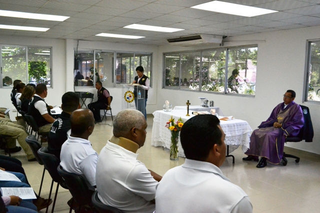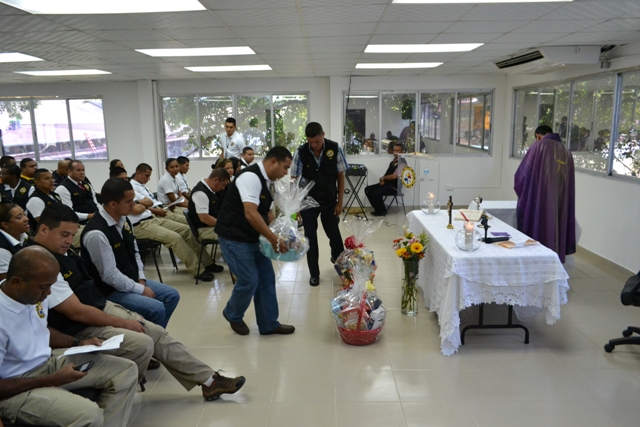 Tras culminar un mes de diversas labores e iniciar otro mes de muchas actividades, unidades de la Dirección de Investigación Judicial (DIJ) recibieron la bendición y dirección de Dios a través de una misa dirigida por el capellán Edgardo Flores de la Policía Nacional. Durante la celebración de la eucaristía, las unidades hicieron entrega de canastas de comida seca y cantaron el cumpleaños a los compañeros que cumplieron en el mes de marzo. La ceremonia contó con la participación del subcomisionado Flavio Vergara Jefe del Departamento de Recursos y demás oficiales jefes de divisiones y departamentos, así como unidades de diversas subdij. La DIJ celebra una misa cada fin de mes en agradecimiento a Dios por sus cobertura sobre cada una de las unidades y sus actividades laborales. |