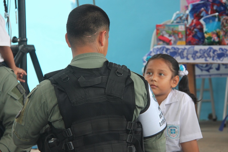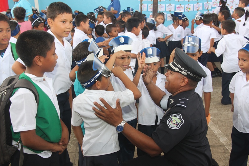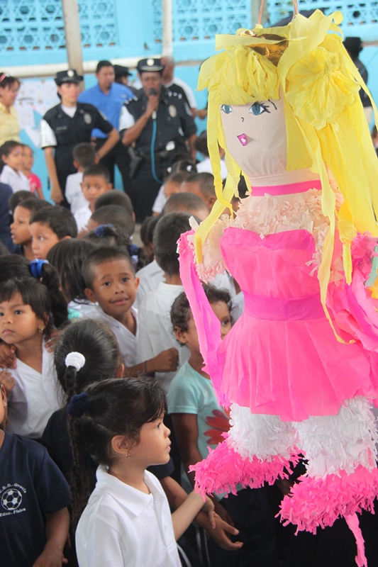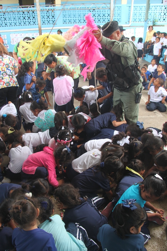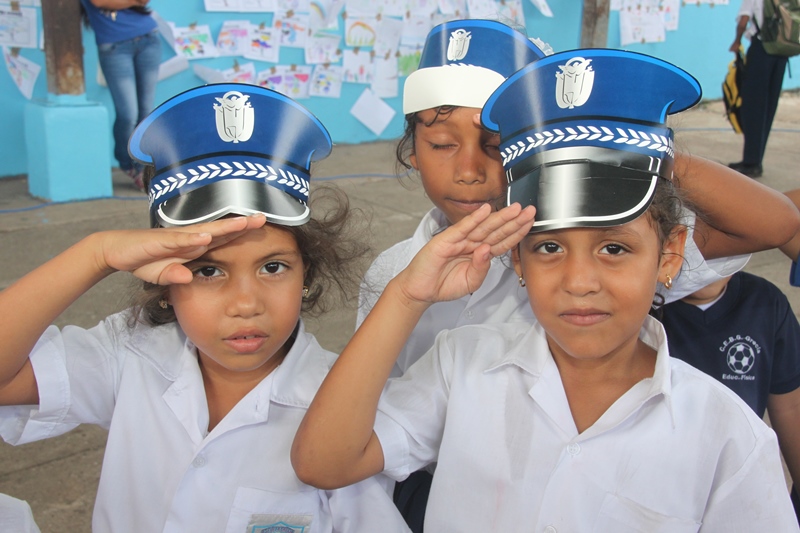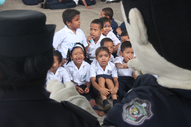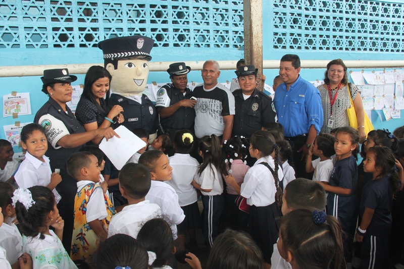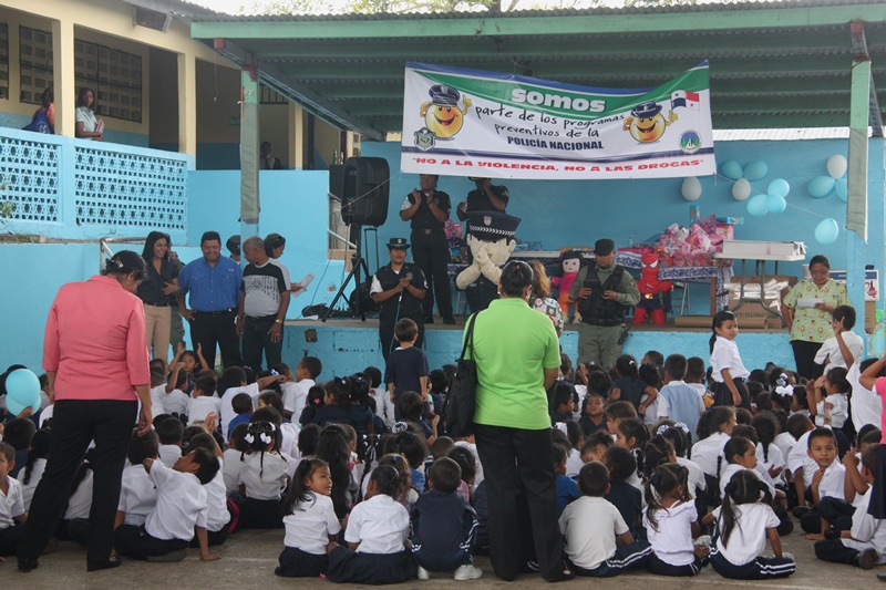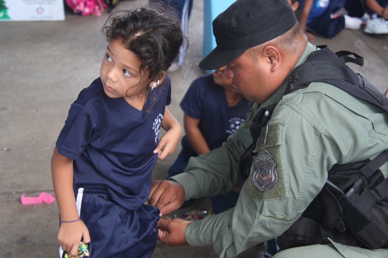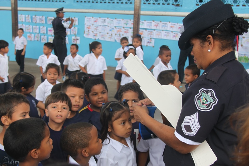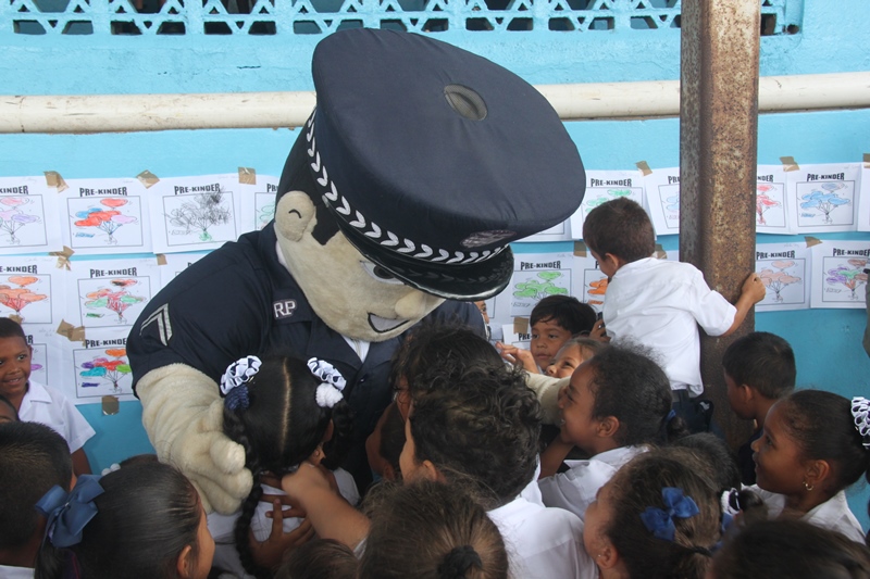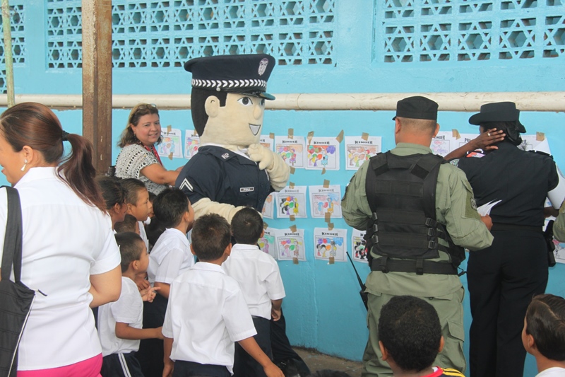 Un día diferente lleno de alegría y sorpresas vivieron los pequeños de pre-kínder, kínder y primer grado, de la Escuela Primaria Villa Grecia, ubicada en la Zona Metropolitana Área Norte, quienes recibieron la grata visita de las unidades policiales a fin de impartirles charlas de prevención para el cuidado de su cuerpo a temprana edad. A través de estos conversatorios, de acuerdo a los programas de prevención que adelanta la Policía de la Niñez y Adolescencia Área Norte, los niños recibieron las herramientas necesarias para fortalecer sus factores de protección. El subteniente, Carlos Rueda, encargado de la Policía de la Niñez y Adolescencia Área Norte, destacó que el propósito de este operativo es fomentar valores en la población escolar y de educación media, fortalecer la autoestima de los estudiantes. Los escolares fueron incorporados a una serie de dinámicas en las que se disfrutaron de juegos, dibujos, entrega de canastitas, piñatas entre otras golosinas, todo esto con un solo objetivo fomentar los valores, actividades deportivas y culturales en las escuelas perteneciente a la zona. Una vez más la Policía Nacional cumple un rol muy importante en la ejecución de planes de seguridad, donde se abordan diferentes temas como la prostitución infantil, el alcoholismo, el embarazo precoz, y la articulación de bandas dentro de las escuelas o la vinculación con grupos externos para el ingreso de drogas o armas al plantel.