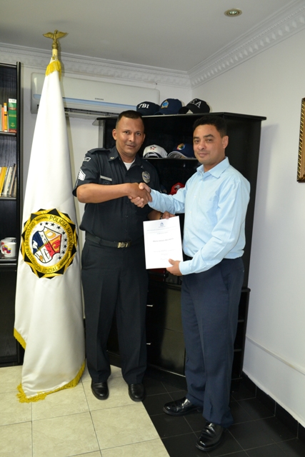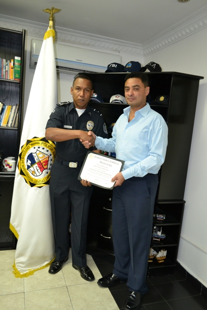 Miembros de la Dirección de Investigación Judicial (DIJ) fueron recibidos la mañana de este lunes por el comisionado Manuel Castillo director de esta institución tras haber culminado la 1era. Formación en Fugitivos Buscados por Delitos Contra el Ambiente. El curso dictado por profesionales en la materia pertenecientes a Interpol se llevó a cabo en Buenos Aires, Argentina por cinco días consecutivos de importantes temas como la identificación de notificaciones, la tala indiscriminada y el trabajo en conjunto con otros países para la obtención de buenos resultados. Los sargentos Ramiro Matos y Alberto Page tuvieron la oportunidad de recibir esta primera formación que compartirán con otras unidades con el fin de ampliar los conocimientos del tema. Ambas unidades presentaron conforme sus certificados al director de la DIJ, quien los felicitó por el empeño aplicado durante los días del curso y los exhortó a continuar incrementando sus aprendizajes. |