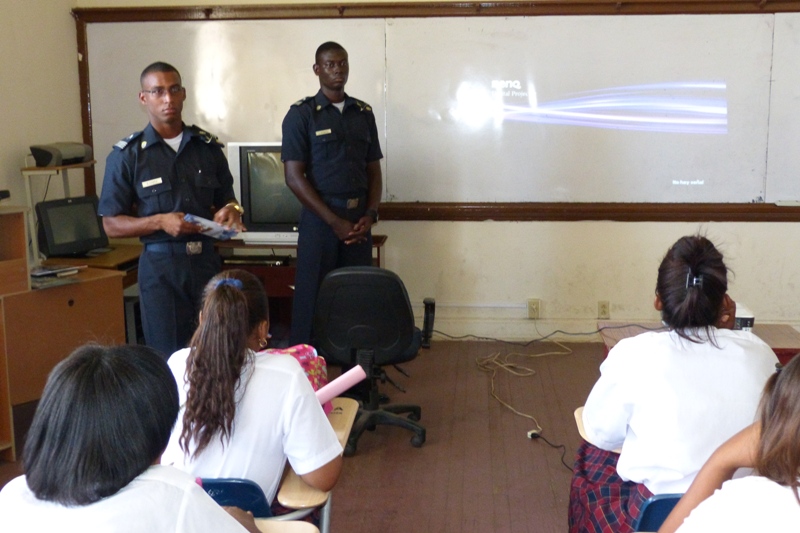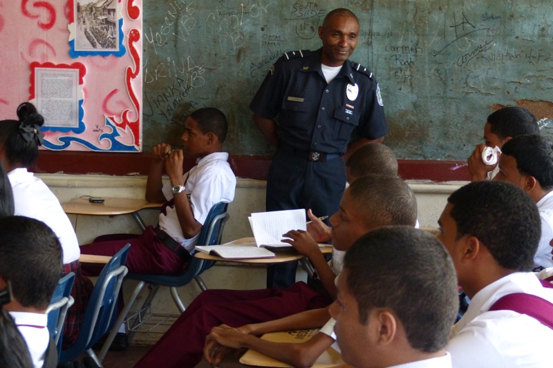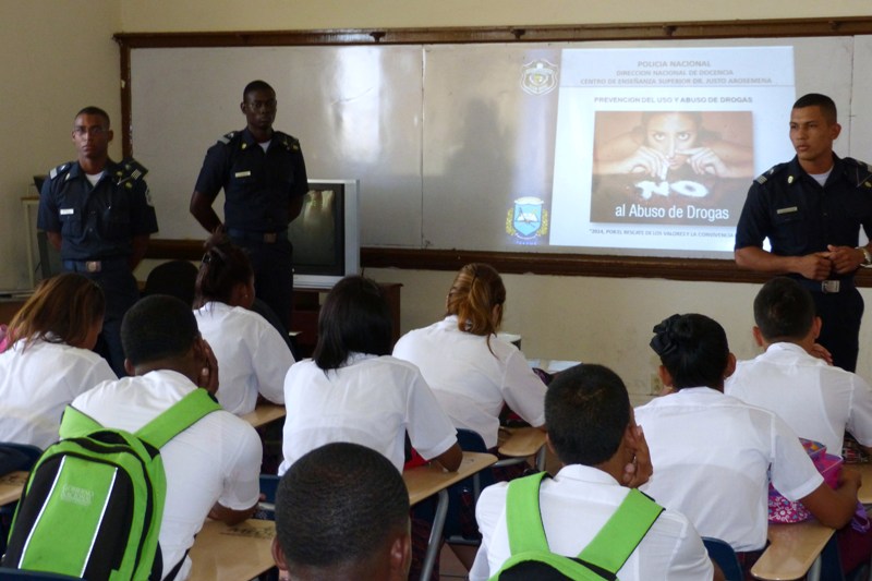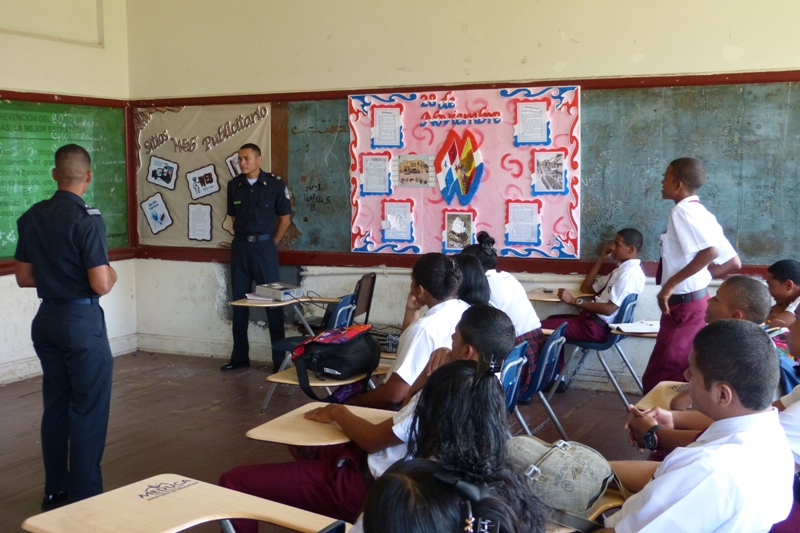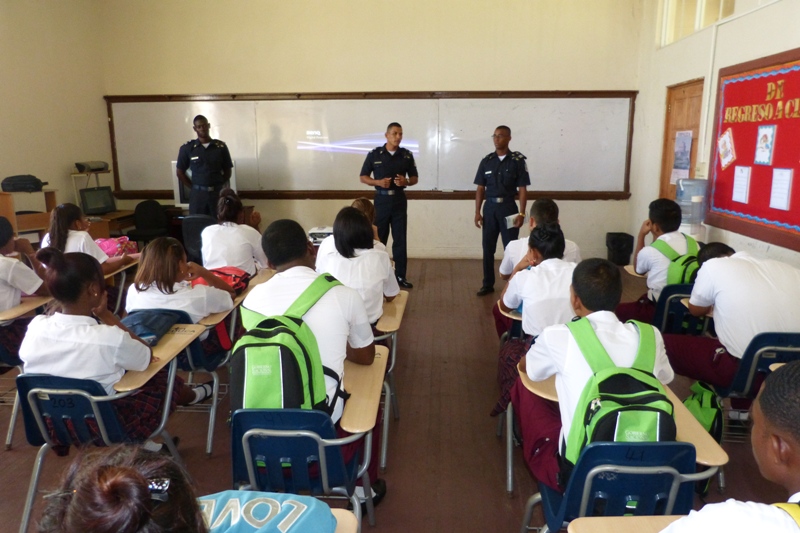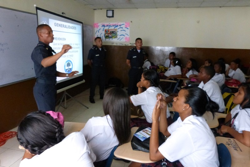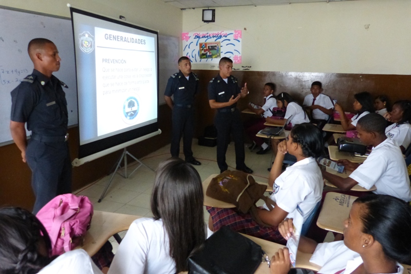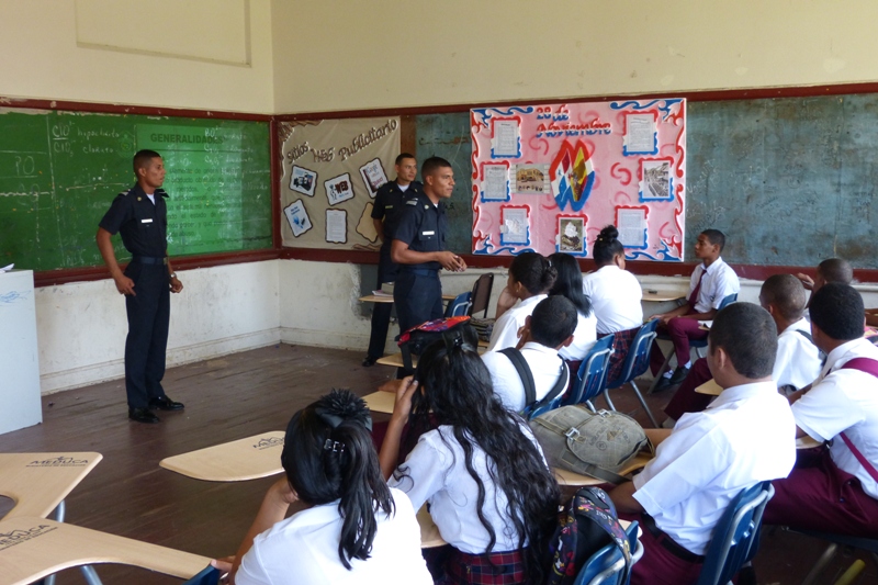 Cadetes del Centro de Enseñanza Superior, Dr. Justo Arosemena de la Policía Nacional a cargo del Subcomisionado, Ezequiel Carrizo, iniciaron una jornada de reforzamiento de valores en diferentes centros educativos en la provincia de Colón, con el objetivo de que los jóvenes estudiantes refuercen los valores aprendidos en casa. La primera escuela visitada fue José Guardia Vega, la cual tiene una matrícula 1,300 estudiantes divididos en turno matutino y vespertino. Los Alféreces expusieron el tema sobre la “Prevención en el uso y abuso de drogas”, donde los estudiantes tuvieron la oportunidad de compartir experiencias y conocimientos con los Alféreces y aclarar todas sus interrogantes. Las licenciadas Nicelia Foster Trabajadora Social, en conjunto con las psicólogas Sheyla Montenegro y Anayka Anderson, agradecieron a los Alféreces por el apoyo brindado con la exposición del tema ya que contribuye a plasmar dentro del ejercicio laboral una población estudiantil sin violencia. La próxima escuela que será visitada es el colegio Abel Bravo, de la provincia de Colón.