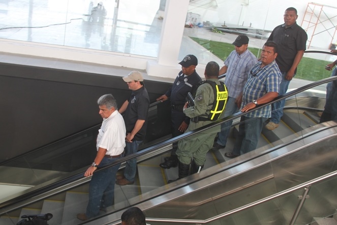 La Policía Nacional está preparada para ofrecer a los usuarios del Metro de Panamá la seguridad necesaria para abordar los trenes en todas las estaciones. Para constatar que todo estuviera en orden, hoy viernes, se realizó una gira de inspección realacionada al tema de seguridad en todos los puntos que abarca el Metro. El grupo fue encabezado por el Director General de la Policía Nacional, Juio Moltó, y el Ministro de Seguridad Pública, José Raúl Mulino. Está previsto que para el trabajo de seguridad en las estaciones se contará con 332 unidades, debidamente capacitadas, que estarán distribuídas en cada una de las estaciones y en los trenes. El jefe de la Unidad Policial del Metro, el Comisionado Alvin Reyes, explicó que desde hace meses el equipo humano que permanecerá en el área ha recibido las instrucciones necesarias para cumplir a cabalidad con la misión. El Comisionado Miguel García, Director Nacional de Operaciones, acompañó al grupo durante la gira de inspección. |
