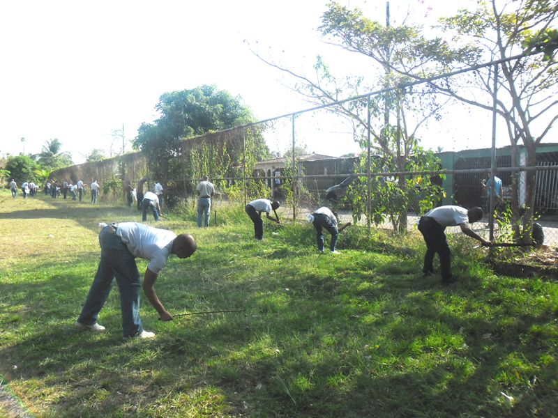 ESTUDIANTES DEL ISPOL, COLABORAN EN LIMPIEZA DE ESCUELA EN JUAN DÍAZ