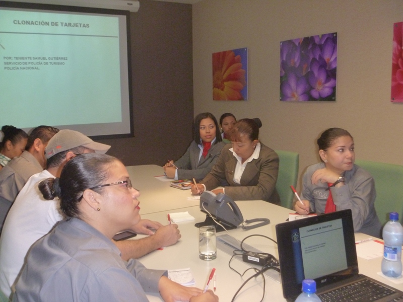 Una jornada de docencia en materia de seguridad se llevó a cabo el pasado jueves 3 de abril por parte de unidades de la Zona de Policía de Chiriquí a los colaboradores del hotel Ciudad de David. La Policía Nacional dio sugerencias útiles a 10 colaboradores del hotel para detectar la presencia de tarjetas de crédito sospechosas, falsificadas y “clonadas”. Entre los consejos que se les brindaron están: Se debe solicitar documento de identidad al portador de la tarjeta y comparar nombres y firmas, verificar número de tarjeta y la coincidencia de los cuatro últimos dígitos, observar la calidad del soporte y el plástico y si es una tarjeta auténtica, la impresión no se destiñe. Esta jornada de docencia estuvo a cargo del Teniente Samuel Gutiérrez, encargado del servicio de Policía de Turismo de la zona policial de Chiriquí y el Sargento 1ro. José Fuentes de la DIJ de David. |