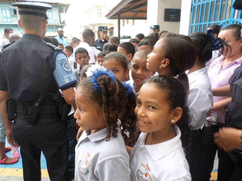 Niños y niñas de la escuela Manuel José Hurtado de El Chorrillo, visitaron el Salón de Historia de la Policía Nacional, donde aprendieron sobre la evolución, desarrollo y aportes de la primera institución de seguridad. Los pequeños se mostraron muy contentos y sorprendidos por los diversos objetos históricos que le fueron mostrados y que hace varias décadas pertenecieron a diferentes unidades policiales. La Unidad Preventiva Comunitaria (UPC) de El Chorrillo en conjunto con maestros de este plantel educativo, hicieron realidad el sueño de estos estudiantes, quienes deseaban conocer el salón de historia. Fueron muchas las interrogantes que formularon los alumnos, al contemplar cada una de las exhibiciones que ilustran las distintas épocas, desde los inicios de la República hasta la actualidad. El cuidado y traslado de los estudiantes junto a sus maestros estuvo a cargo de las unidades de la UPC. |