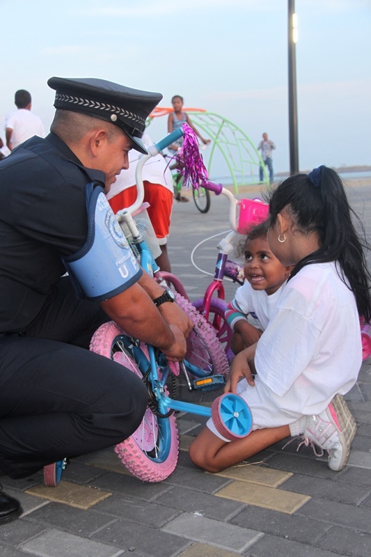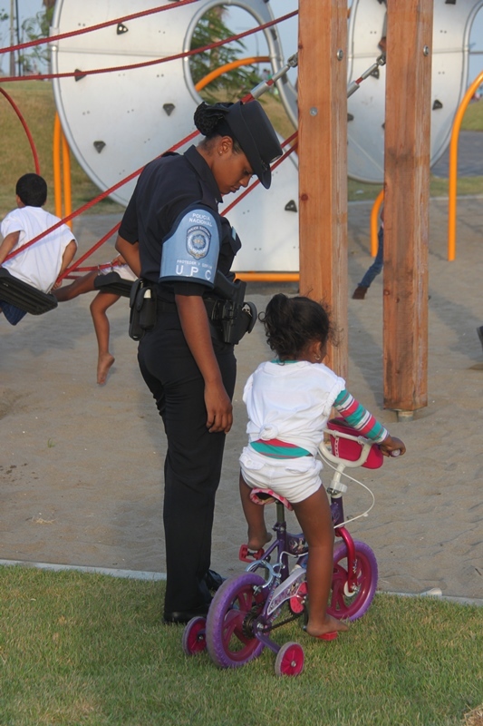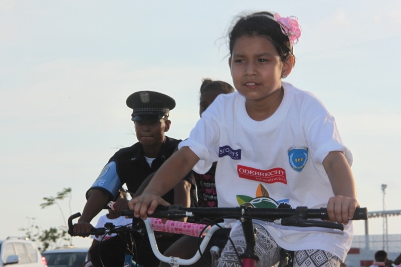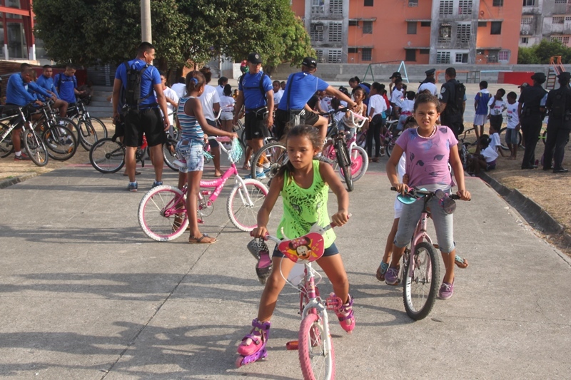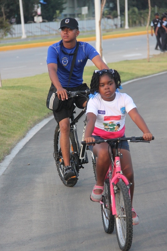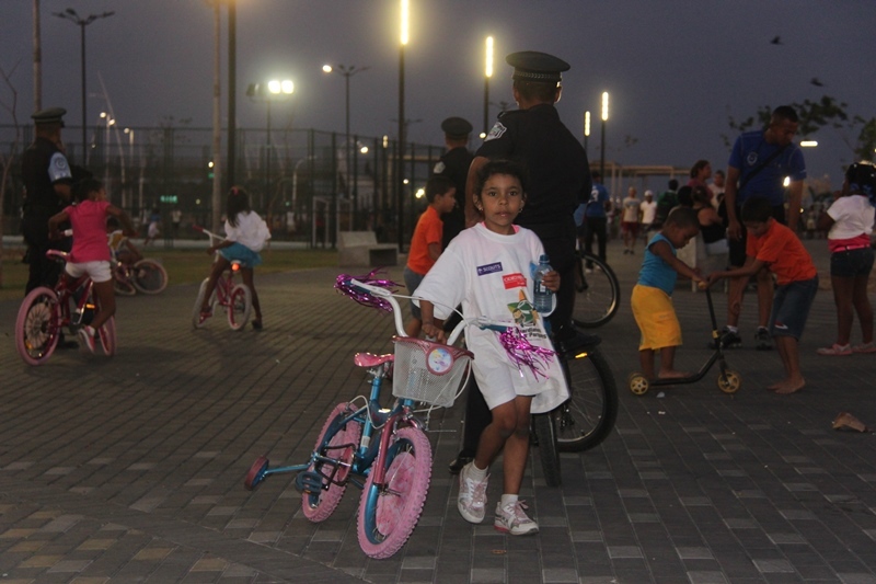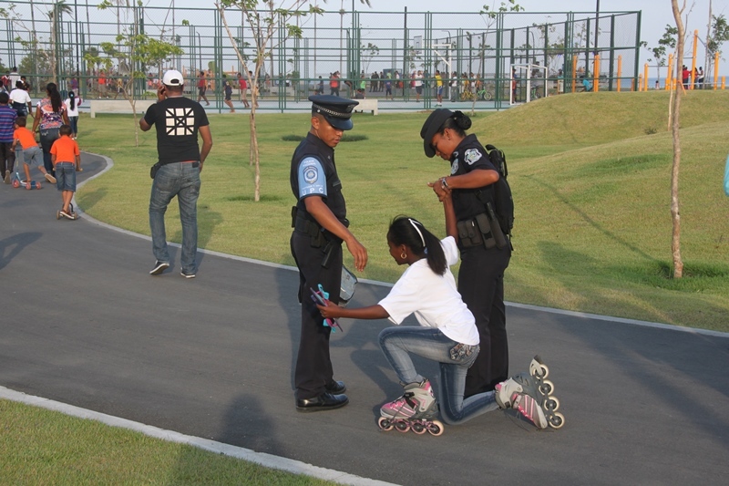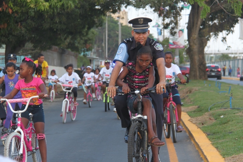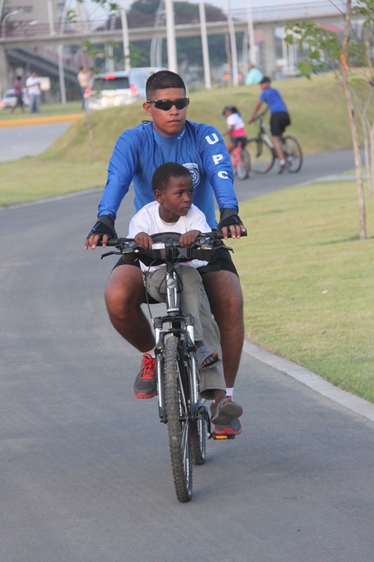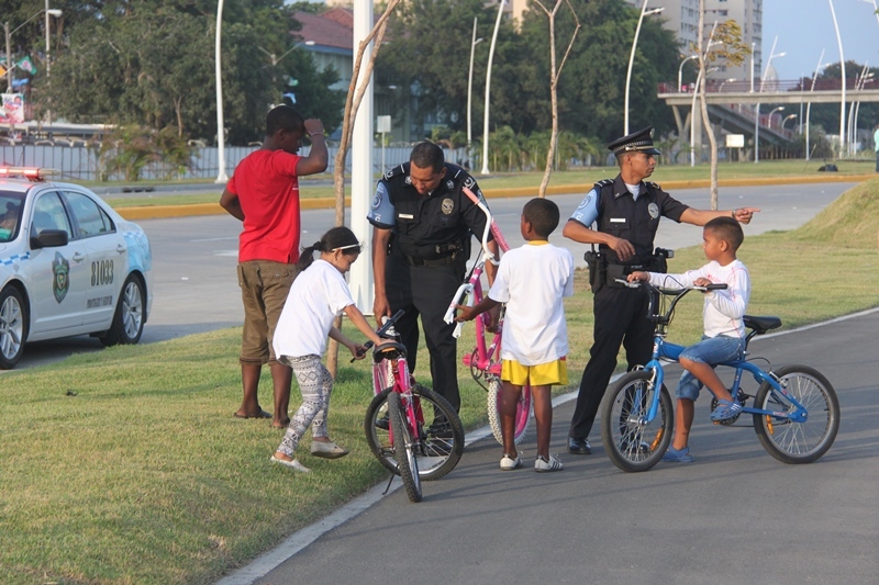 Trescientos niños y niñas de El Chorrillo y de Curundú junto a los efectivos de la Unidad Preventiva Comunitaria (UPC) de la Policía Nacional realizaron un recorrido por la tercera etapa de la Cinta Costera que fue inaugurada este miércoles 9 de abril del 2014. Los pequeños muy emocionados y bajo los cuidados de los uniformados, apreciaron esta obra que se convierte en un nuevo espacio para el esparcimiento, ofreciendo a los visitantes miradores, plazas para eventos, 5 parques infantiles con facilidades para niños con discapacidad, parque de patinetas y canchas deportivas. Estas amenas tardes de cicletadas organizadas por la UPC, tienen el propósito de brindarle a los niños momentos de recreación, ayudando así a fortalecer su confianza, los valores y la amistad, entre ambos barrios. |