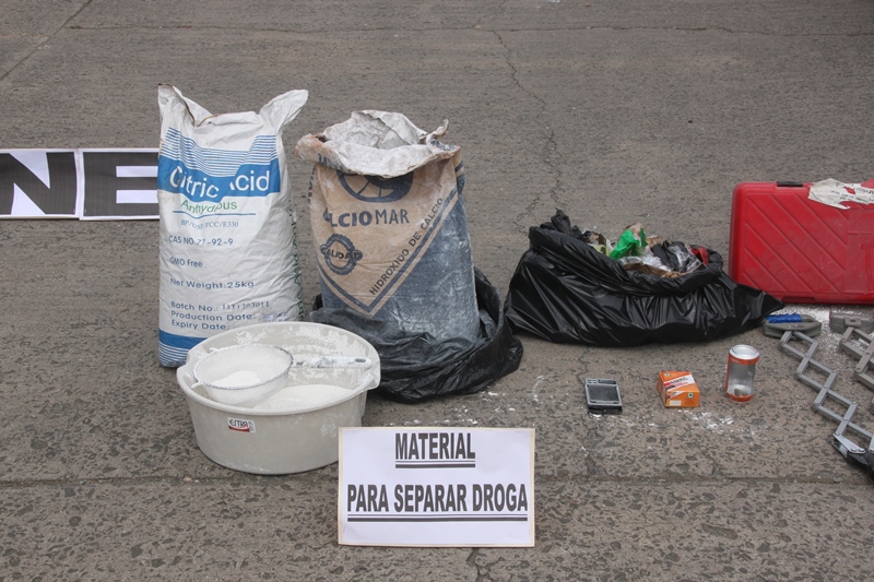 Unidades antinarcóticos de la Policía Nacional, en conjunto con funcionarios de la Fiscalía de Droga, lograron desmantelar un centro de empaque y reenvío de drogas ubicado en una residencia establecida en la calle 66 del sector de Carrasquilla en el corregimiento de San Francisco. En el mencionado lugar, las autoridades policiales lograron la incautación de 40 kilos de la presunta cocaína, además del decomiso de dos vehículos y tres prensas hidráulicas móviles para la elaboración de comprimidos. Igualmente se incautaron un número plural de cintas adhesivas, cauchos, plásticos, bicarbonato de sodio, pesas de gramos, evases y otros implementos utilizados para empacar la ilícita mercancía. Asi mismo se ubicaron materiales para la separación de mercancías simuladas, (calciomar, pergamonato, etc.) los cuales fueron traídos de Honduras. La acción policial permitió la captura de dos ciudadanos, ambos de nacionalidad mexicana, quienes junto a las evidencias, fueron puestos a órdenes de las autoridades judiciales competentes. |