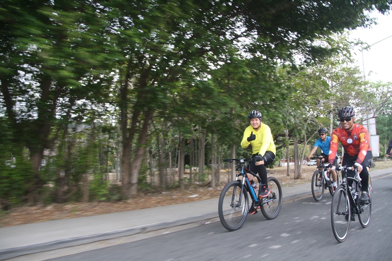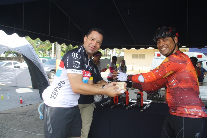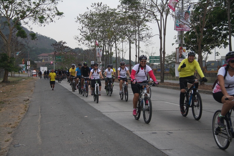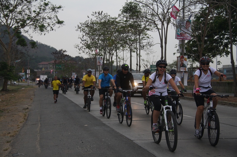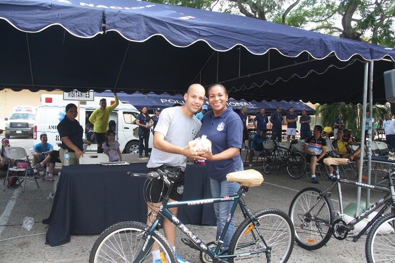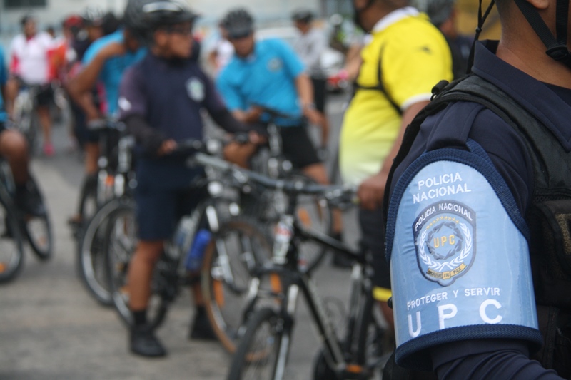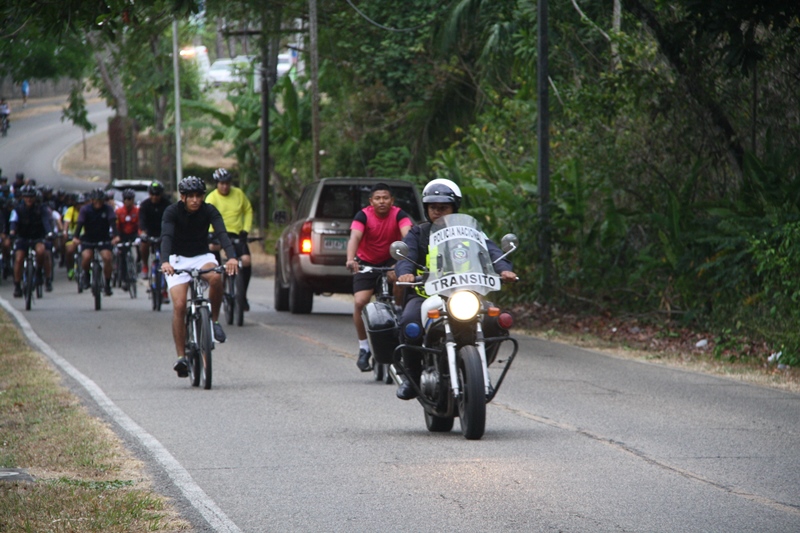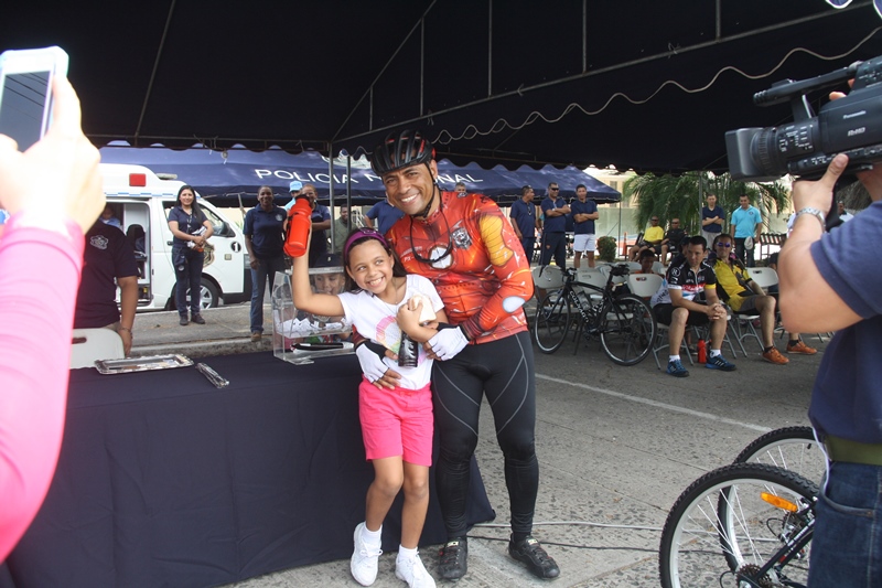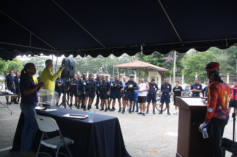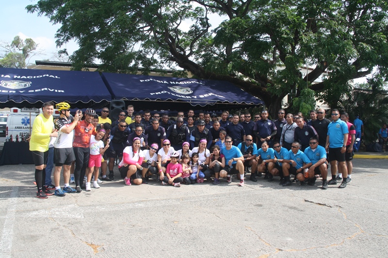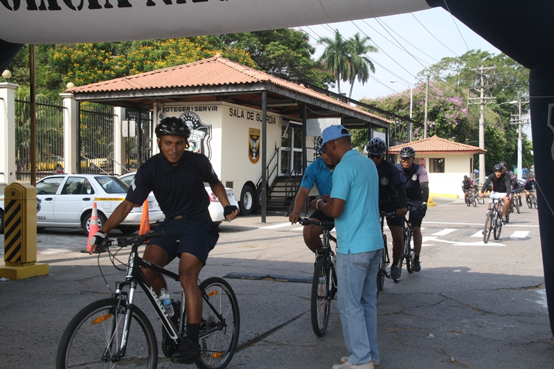 Un paseo ciclístico se realizó desde tempranas horas de este domingo 13 de abril, siendo parte de las actividades en celebración de los setenta y siete años (77) del Día del Policía. Los uniformados, algunos acompañados por sus hijos, se reunieron en la sede policial de Ancón desde donde partió la cicletada que tuvo como ruta la Ciudad del Saber en Clayton, Albrook y la Calzada de Amador. A su retorno a la sede policial, los ciclistas fueron recibidos con una alegre murga y disfrutaron de nutritivos emparedados, frutas y refrescos. Los asistentes también participaron de una tómbola, en la que se obsequiaron bicicletas y accesorios. El Comisionado Felipe Cruz, jefe de la Dirección Nacional de Armamento expresó que con esta actividad se busca ofrecer un rato ameno donde los uniformados compartan junto a sus compañeros, hijos y esposas, reforzando así los lazos familiares y la convivencia laboral. |