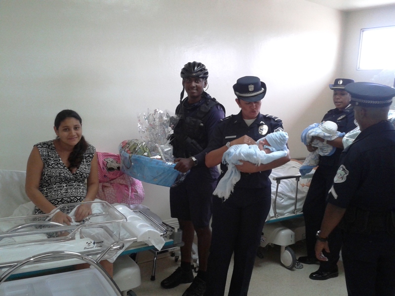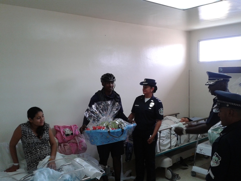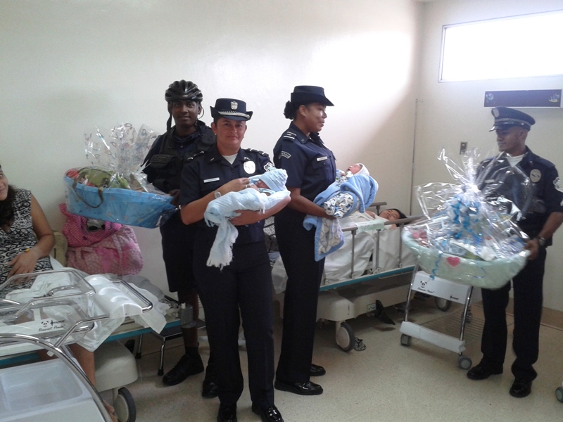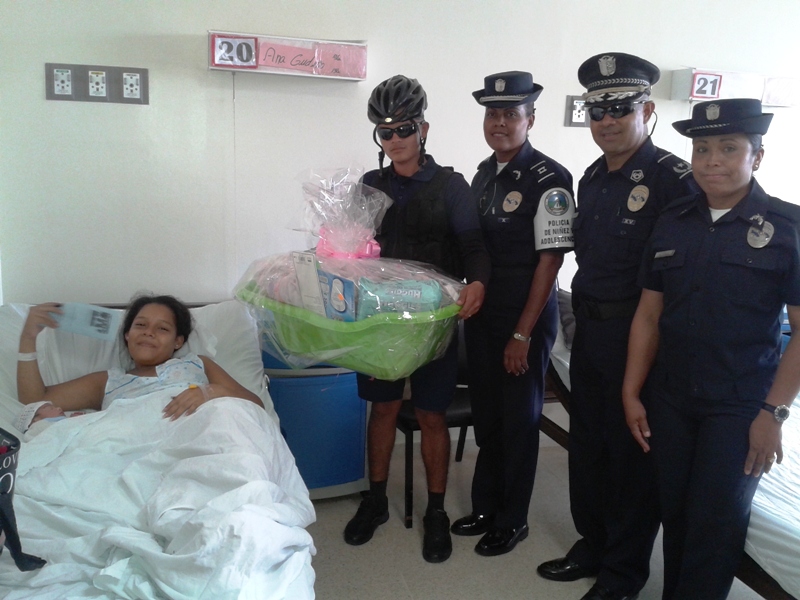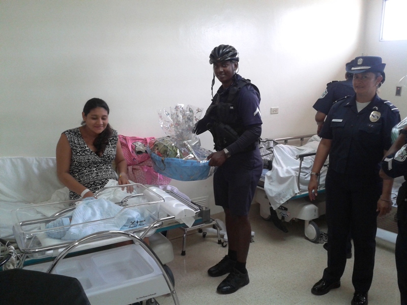 Como parte de las actividades conmemorativas al Día del Policía, la Décima zona policial hizo entrega de canastillas a los primeros bebes nacidos hoy 14 de abril del año en curso. El Subcomisionado Gregorio Alvarado Ejecutivo de esta zona policial, en compañía del personal femenino, ciclistas y grupos policiales efectuaron la entrega de cuatro canastillas a los primeros bebes nacidos en el Hospital Nicolás A. Solano del distrito de La Chorrera resultaron agraciadas las señoras Milagro Sanjur, Ana Gudiño y Luz Suting quienes dieron a luz unos hermosos niños y la joven Kerelis Muñoz quien trajo al mundo una hermosa niña. |