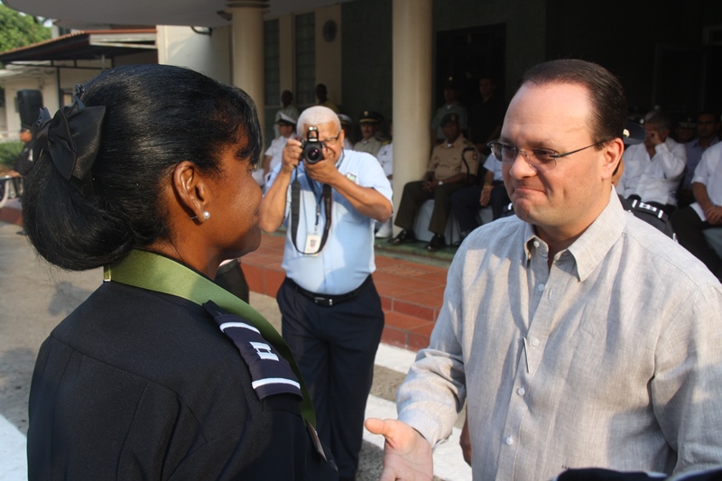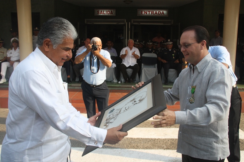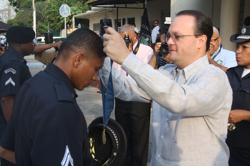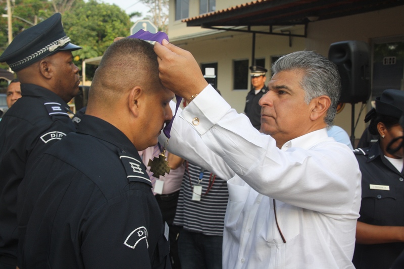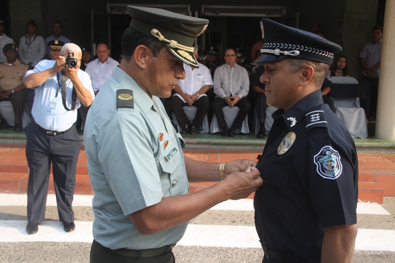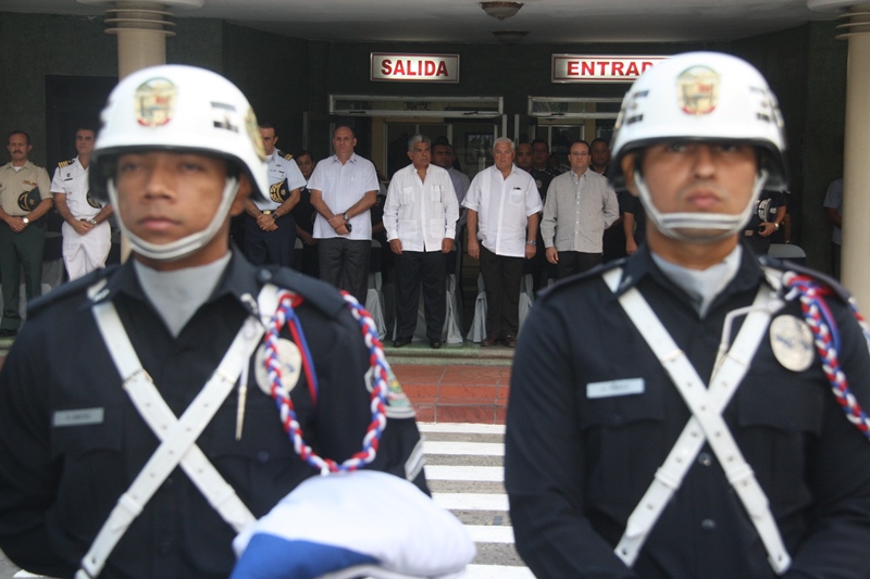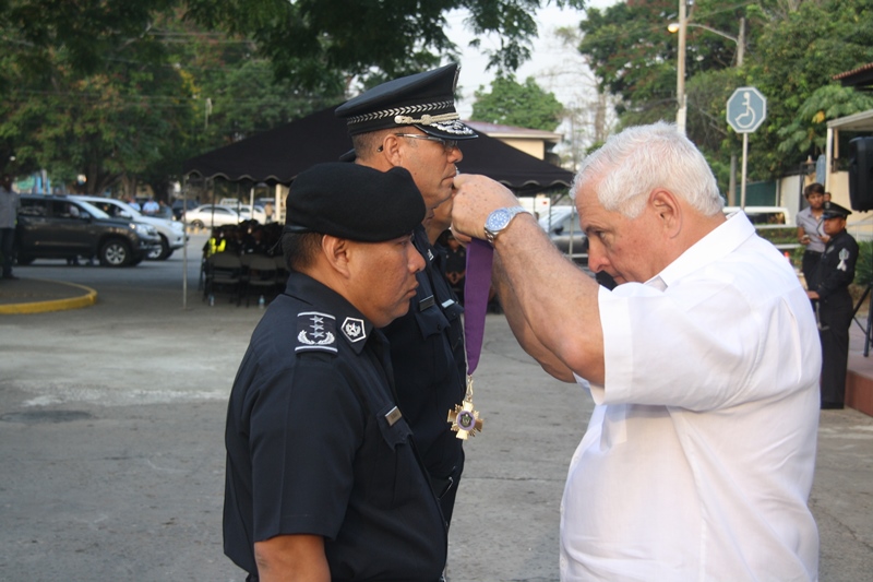 Unidades policiales pertenecientes a las diferentes dependencias de la Policía Nacional fueron condecoradas en una ceremonia en conmemoración de los 77 años de aniversario del Día del Policía. Todo se dio ante la mirada del Presidente de la República, Ricardo Martinelli, quien en compañía el Director de la Policía Nacional, Julio Armando Moltó y del Ministro de Seguridad Pública, José Raúl Mulino, encabezó el acto de entrega y reconocimiento a las unidades destacadas. Entre las distinciones que realizó esta institución de seguridad están: a) Medalla Honor al Mérito: Por actos excepcionales del Servicio. b) Medalla al Servicio Distinguido: Además de ser policías, se destacan en otras áreas del saber humano. c) Medalla al Valor: Por actos excepcionales del servicio y de forma póstuma. d) Medalla al Sacrificio: Se otorga al personal que se distinga extraordinariamente en el servicio. El director de la policía, Julio Moltó, felicitó a todos los uniformados en su día, reconociendo todo el esfuerzo que hacen para cuidar a los que viven en este país a costa de su propia vida. Moltó dijo que el policía es un servidor de la ley, que muchas veces tienes que hacer de mediador, tutores, consejeros; pero siempre con el sentido de responsabilidad de cuidar a los demás. El mandatario señaló que cuando empezó el actual gobierno solo había dos helicópteros y ahora existen 18, hay lanchas patrulleras. "Me siento orgulloso de que hayamos invertido en la policía porque la hemos cambiado", agregó. El Presidente manifestó que la actual administración tomó un camino y se desarrollaron programas de modernización en todas las entidades de seguridad. Dijo además que cómo no se va a invertir en una institución y unos panameños que contribuyen con el crecimiento económico del país manteniendo una nación segura y cuidándola con sus propias vidas. "Todo lo que he prometido lo he cumplido, porque Panamá merece mejores días y es un país lleno de oportunidades", sostuvo. Felicitó igualmente a todos los directores de los estamentos de seguridad por la labor que han desempeñado al frente de las diferentes instituciones. El Director de la Policía Nacional entregó al Presidente de la República y al Ministro de Seguridad Pública un reconomicimiento especial. |
