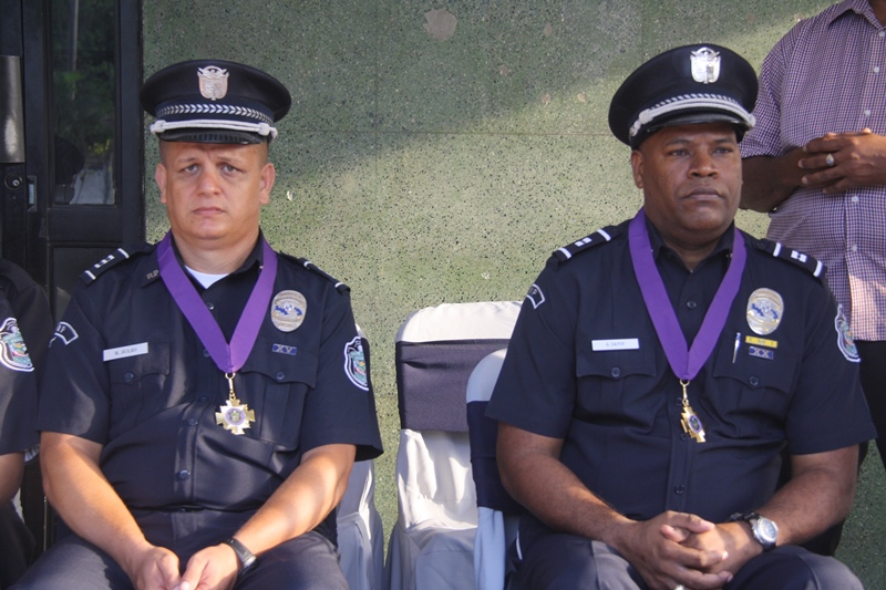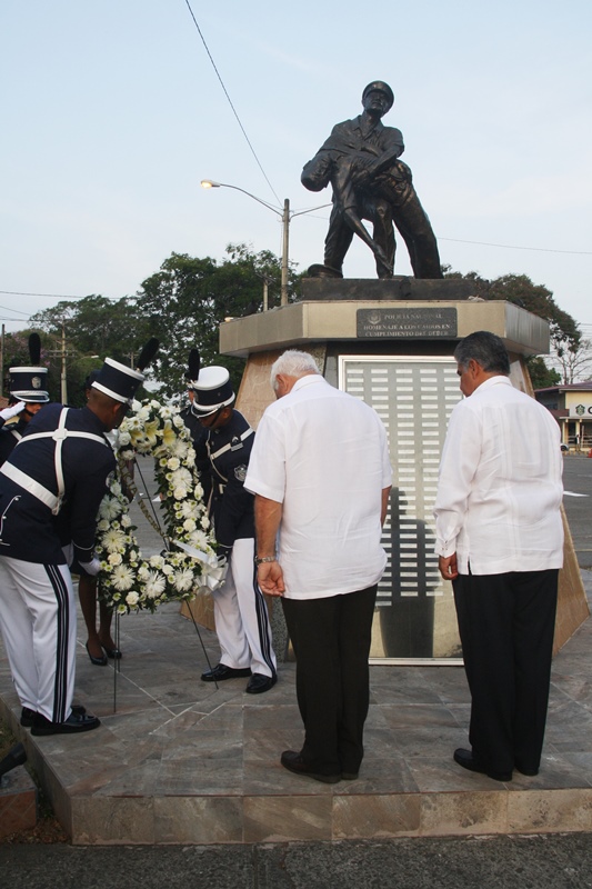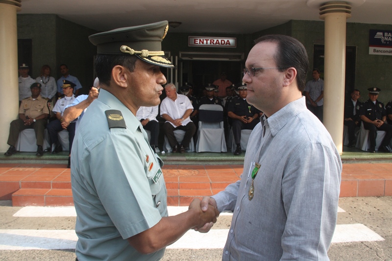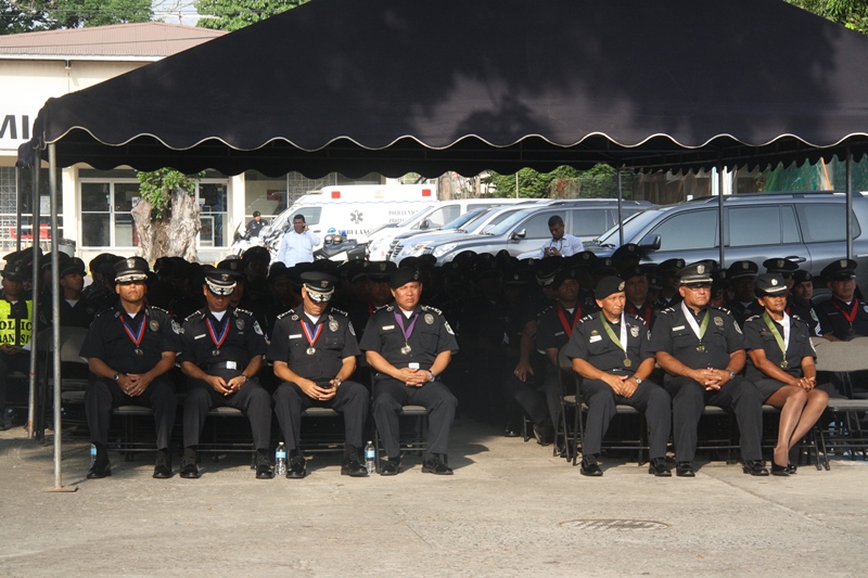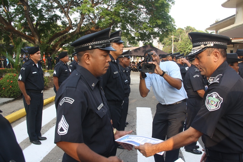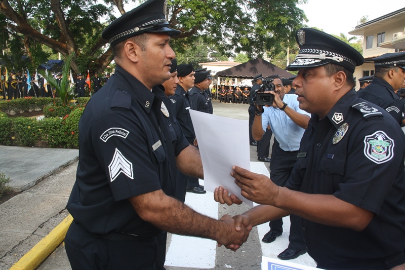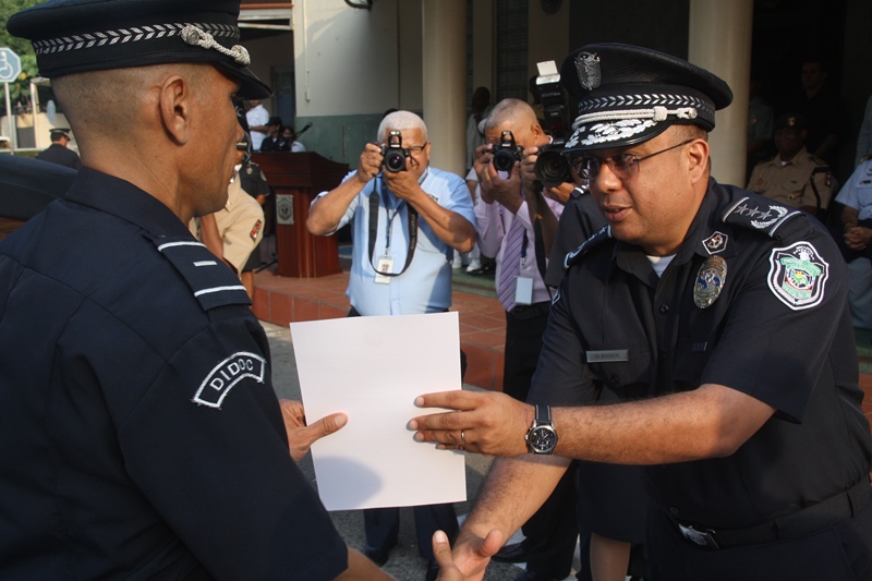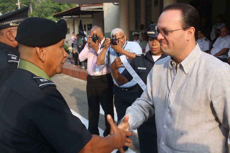 Unidades policiales pertenecientes a las diferentes dependencias de la Policía Nacional fueron condecoradas en una ceremonia en conmemoración de los 77 años de aniversario del Día del Policía. Todo se dio ante la mirada del Presidente de la República, Ricardo Martinelli, quien en compañía el Director de la Policía Nacional, Julio Armando Moltó y del Ministro de Seguridad Pública, José Raúl Mulino, encabezó el acto de entrega y reconocimiento a las unidades destacadas. Entre las distinciones que realizó esta institución de seguridad están: a) Medalla Honor al Mérito: Por actos excepcionales del Servicio. b) Medalla al Servicio Distinguido: Además de ser policías, se destacan en otras áreas del saber humano. c) Medalla al Valor: Por actos excepcionales del servicio y de forma póstuma. d) Medalla al Sacrificio: Se otorga al personal que se distinga extraordinariamente en el servicio. El director de la policía, Julio Moltó, felicitó a todos los uniformados en su día, reconociendo todo el esfuerzo que hacen para cuidar a los que viven en este país a costa de su propia vida. Moltó dijo que el policía es un servidor de la ley, que muchas veces tienes que hacer de mediador, tutores, consejeros; pero siempre con el sentido de responsabilidad de cuidar a los demás. El mandatario señaló que cuando empezó el actual gobierno solo había dos helicópteros y ahora existen 18, hay lanchas patrulleras. "Me siento orgulloso de que hayamos invertido en la policía porque la hemos cambiado", agregó. El Presidente manifestó que la actual administración tomó un camino y se desarrollaron programas de modernización en todas las entidades de seguridad. Dijo además que cómo no se va a invertir en una institución y unos panameños que contribuyen con el crecimiento económico del país manteniendo una nación segura y cuidándola con sus propias vidas. "Todo lo que he prometido lo he cumplido, porque Panamá merece mejores días y es un país lleno de oportunidades", sostuvo. Felicitó igualmente a todos los directores de los estamentos de seguridad por la labor que han desempeñado al frente de las diferentes instituciones. El Director de la Policía Nacional entregó al Presidente de la República y al Ministro de Seguridad Pública un reconomicimiento especial. |